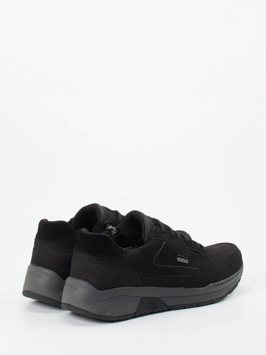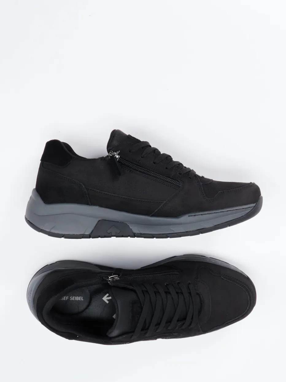 Komfort trifft Funktionalität.Josef Seibel präsentiert mit diesem Sneaker ein Modell für Herren, das Design und Alltagstauglichkeit verbindet. Ob bei einem Stadtspaziergang oder unterwegs im Alltag – das schwarze Nubukleder zeigt sich samtig angeschliffen und wind- wie wasserabweisend. Die sportlich-klassische Silhouette wird durch tonale Steppnähte, einen seitlichen Reißverschluss und ein Metall-Logopatch akzentuiert. Innen sorgt Textilfutter für Tragekomfort; die robuste Gummisohle samt Dämpfung punktet mit sicherem Halt. Das Modell bietet durch die Weite H auch Platz für breitere Füße. Stylingtipp: Lässt sich vielseitig zu Jeans oder Funktionskleidung kombinieren. Robuster Komfort mit unaufgeregtem Look für aktive Tage – typisch Josef Seibel.