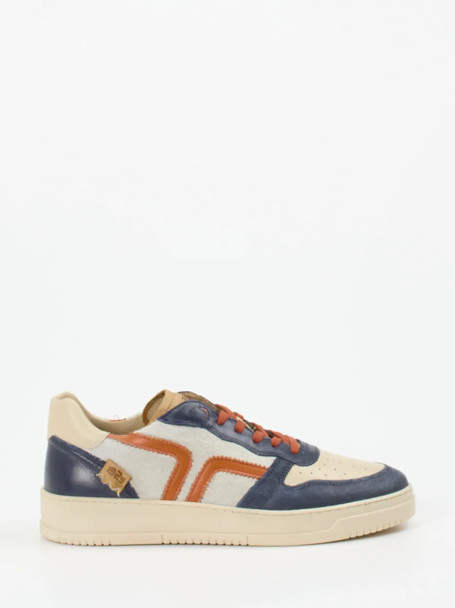 Für Alltag, Freizeit oder lässige Abende: Der Materialmix aus glattem und aufgerautem Kalbleder sorgt in Kombination mit einer flexiblen Gummisohle für Komfort und Hochwertigkeit. Die Cremebasis trifft auf navyblaue Overlays und rostorange Zickzack-Akzente im angesagten Y2K-Colorblocking. Ziegelfarbene Schnürsenkel und ein seitliches Logo-Detail unterstreichen die sportlich-runde Silhouette. Inspiriert von Retro-Sportswear und überraschend modern im Styling – ideal zu Jeans und Oversize-Hoodie.