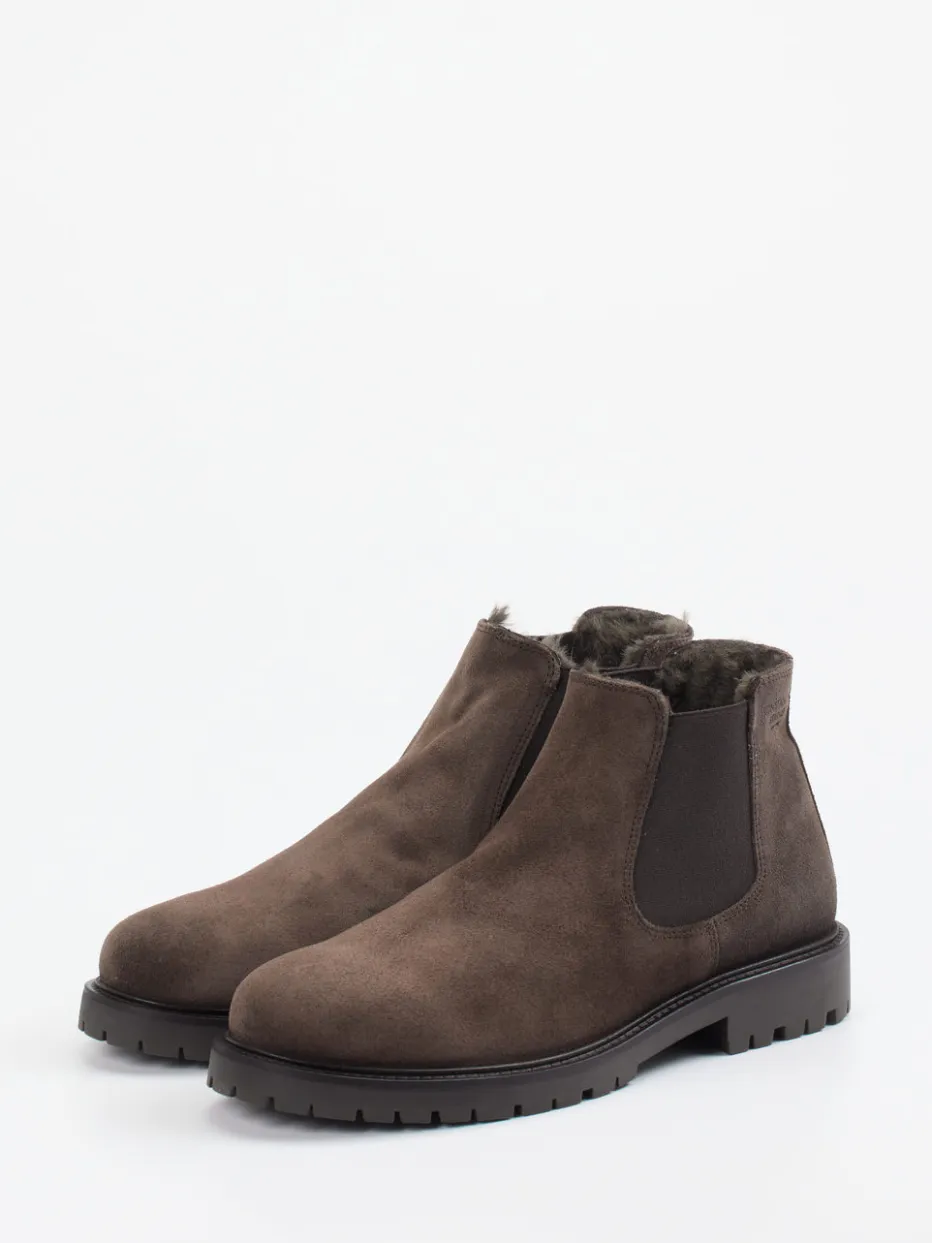 Authentischer Look, funktional veredelt.Konstantin Starke präsentiert hochwertige Chelsea Boots für Herren. Für urbane Wintertage mit Stilanspruch bietet dieses Modell zuverlässige Wärme und Eleganz. Das braune Veloursleder in matter Ausführung wirkt edel und zurückhaltend, während tonale Elastikeinsätze und ein geprägtes Logo dezent Akzente setzen. Die knöchelhohe Form mit Lammfellfutter und rutschfester Profilgummisohle verbindet Komfort mit Funktion – von Büro bis Freizeit. Inspiriert von Quiet Luxury und Heritage-Design, lässt sich der Look mühelos zu Wollmantel und Kaschmir kombinieren. Ein Alltagsbegleiter mit klarer Linie und hoher Verlässlichkeit.