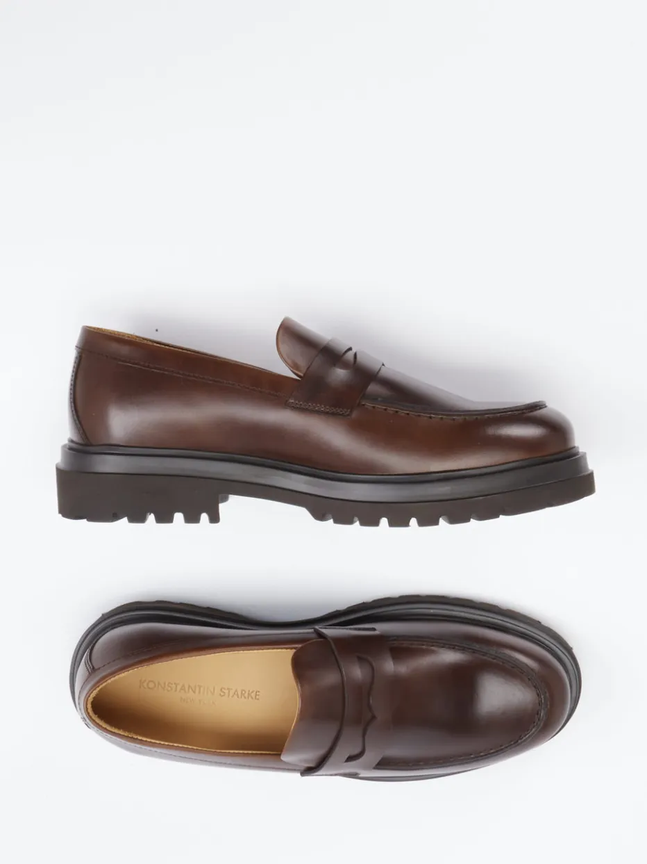 Dieser dunkelbraune Loafer von Konstantin Starke kombiniert edles Fettleder mit einer markanten Profilsohle – ein stilvoller Begleiter zwischen Tradition und Trend.