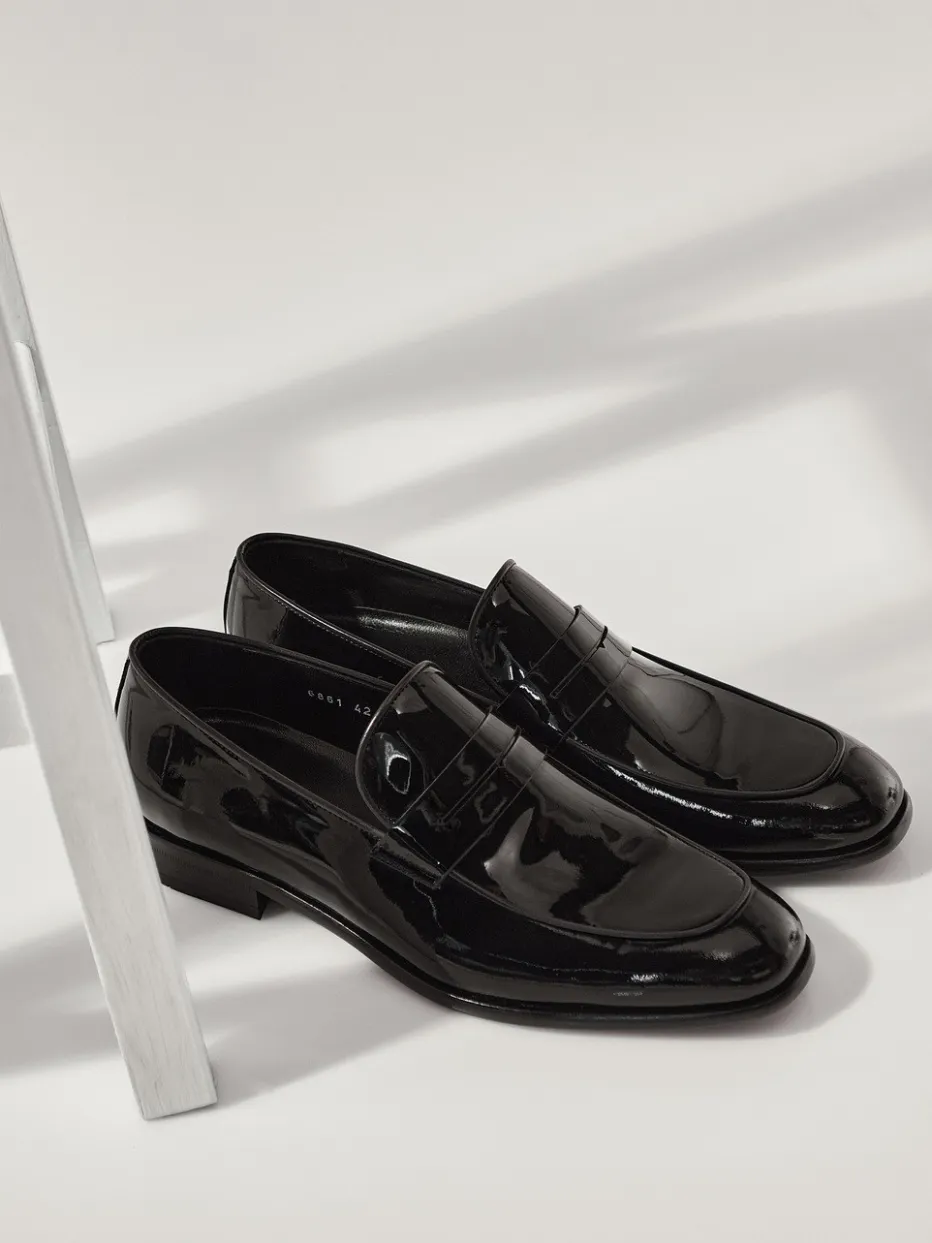 Ein Herren-Loafer mit klassischer Linienführung und hochglänzender Oberfläche – stilvolle Wahl für formelle Momente. Lackleder und Kalblederfutter sorgen für Qualität bis ins Detail.