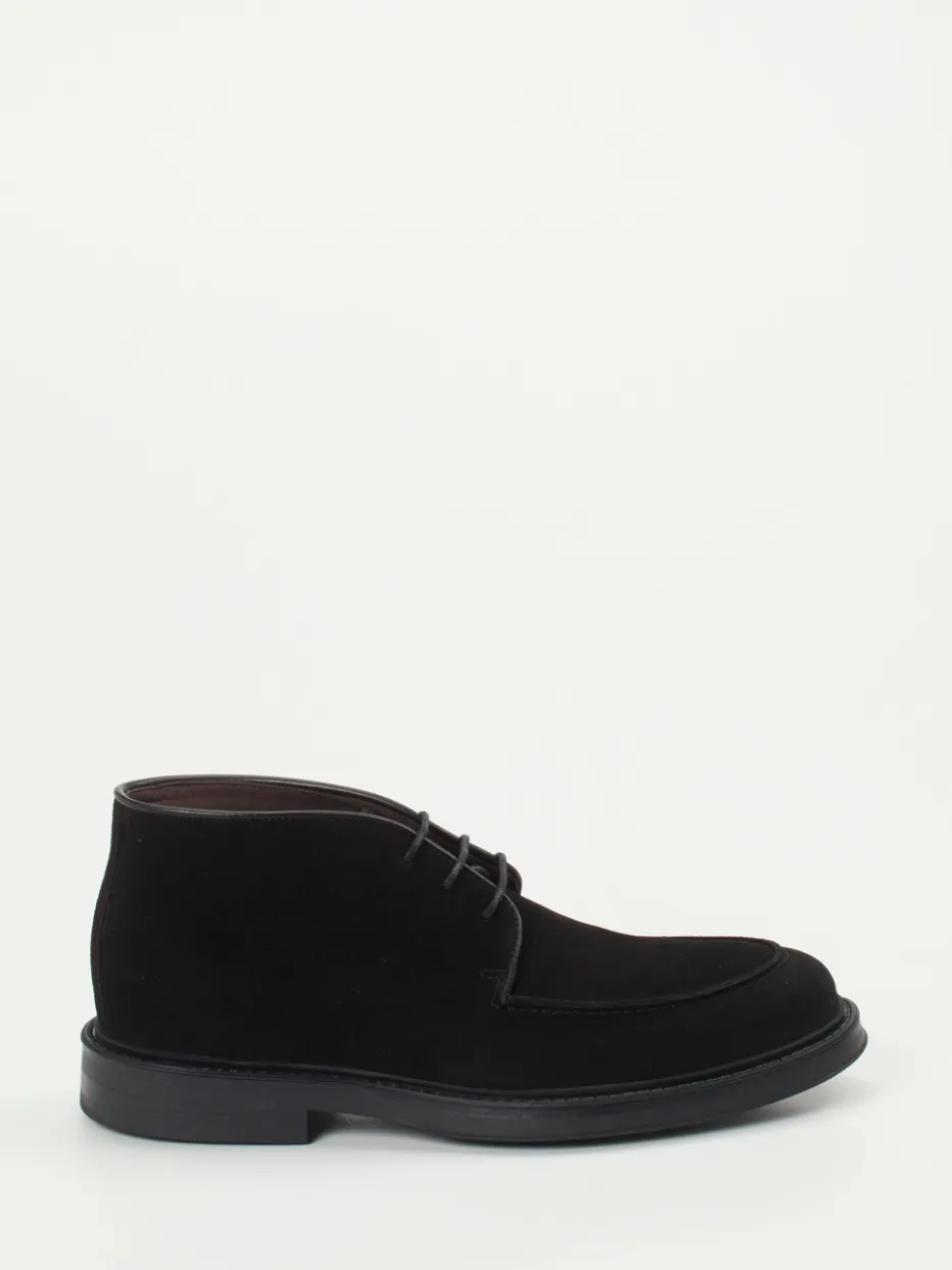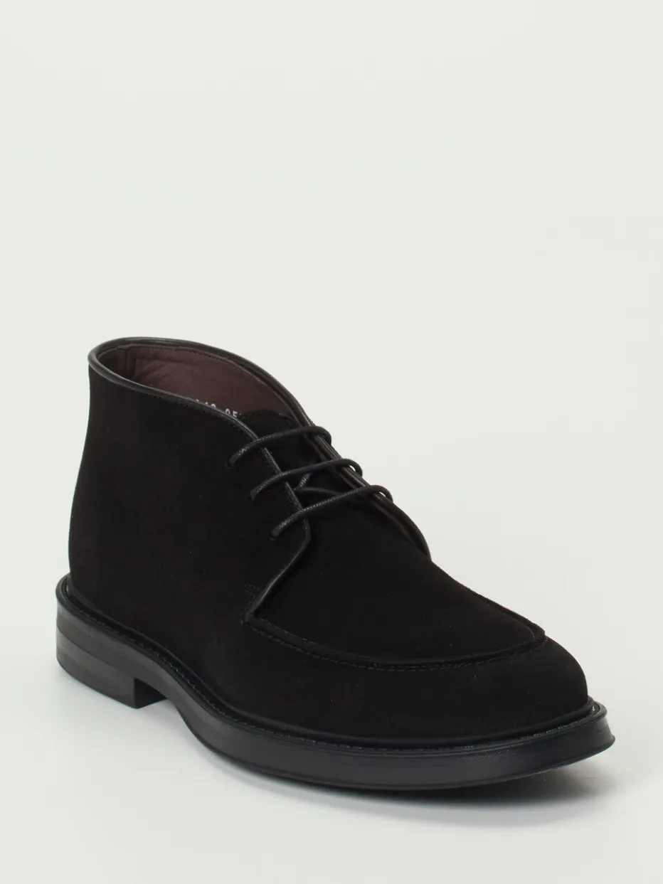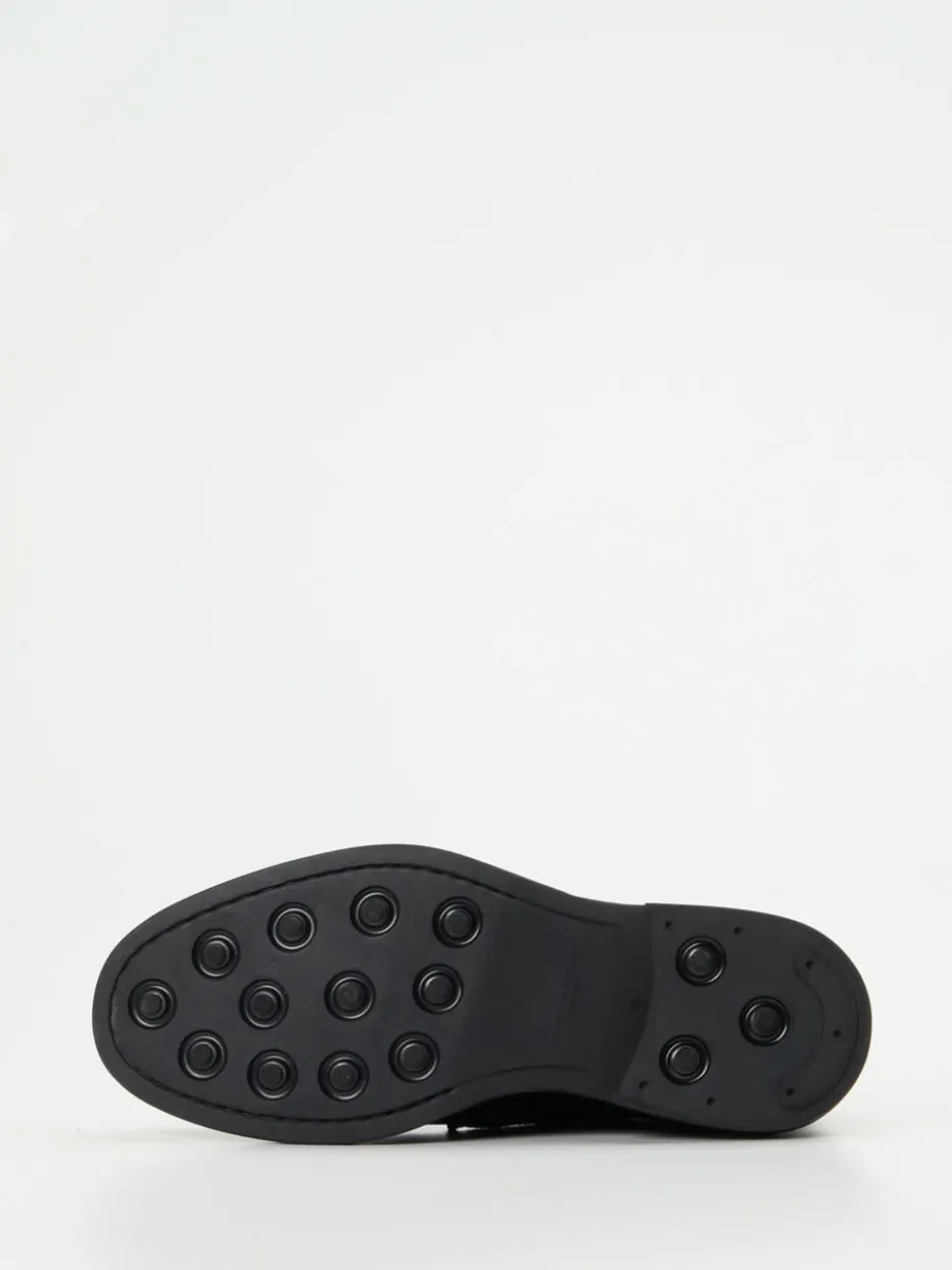 Ob im Büroalltag oder bei urbanen Freizeitmomenten – diese Boots sind durch ihr edles, samtig angeschliffenes Veloursleder nicht nur optisch ein Highlight. Das tiefschwarze Obermaterial, die klassische Passform mit Mokassinnaht sowie die fein profilierte Gummisohle bilden ein stilvolles Gesamtbild, das sich unter anderem am Quiet Luxury Trend orientiert. Ein weiches Kalblederfutter mit gepolstertem Fußbett sorgt für hohen Tragekomfort. Ideal kombinierbar mit Wollhosen oder cleanen Business-Casual-Outfits.
