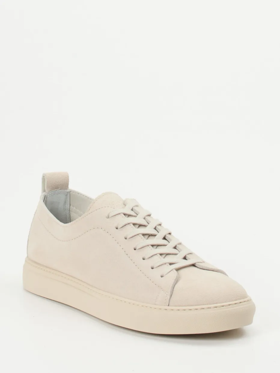 Schlichte Raffinesse in Cremebeige.Konstantin Starke interpretiert den Low-Top-Sneaker neu – puristisch, hochwertig und alltagstauglich. Ein klarer Favorit für gepflegte Freizeitmomente oder entspannte Business-Looks: Das samtig angeschliffene Veloursleder in hellem Beige überzeugt mit softer Haptik und hochwertiger Verarbeitung. Die klassische, runde Silhouette wird durch tonige Nähte, Fersenlasche und eine cleane Schnürung unterstrichen. Innen sorgt ein ledergefüttertes Wechselfußbett für angenehmen Tragekomfort. Das Design folgt den Principles von „Quiet Luxury“ und ist ideal für monochrome Sommer-Looks. Besonders harmonisch kombinierbar mit Naturtönen oder minimalistischer Linienführung. Ein Schuh mit zeitloser Eleganz und dem unverkennbaren Anspruch der Marke Konstantin Starke.