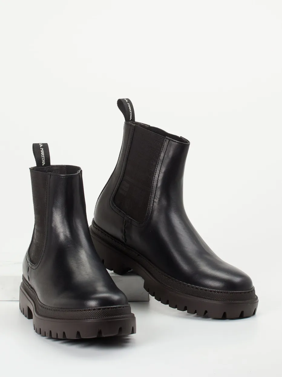 Hochwertiges Kalbleder trifft auf klare Linienführung: Die Chelsea Boots von La Martina überzeugen mit robuster Profilsohle und dezenter Markeninszenierung.