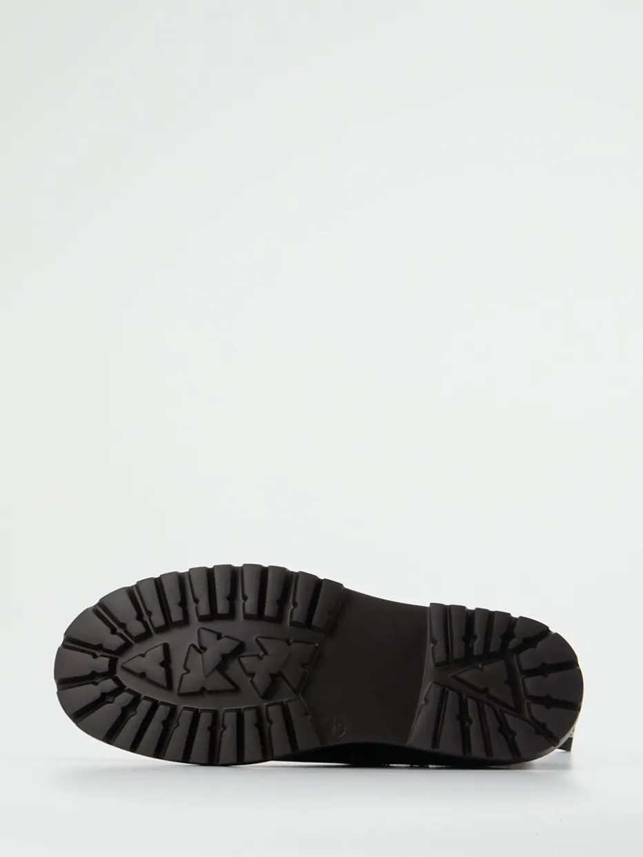 Robuste Eleganz für urbane Looks.La Martina präsentiert klassische Chelsea Boots für Herren mit urbanem Charme. Ideal für den Alltag zwischen Freizeit und Business: Gefertigt aus schwarzem Kalbleder mit matter Oberfläche bieten diese Boots dank elastischer Einsätze mit Ton-in-Ton-Logo und gepolstertem Wechselfußbett hohen Komfort. Die markante Chunky-Sohle aus Gummi sorgt für Stabilität und liegt voll im Streetwear-Trend. Zuglaschen mit weißem Marken-Schriftzug unterstreichen den stilvollen Auftritt. Stilistisch passen die Boots ideal zu Oversized-Mänteln oder monochromen Layering-Looks. Ein souveräner Stilbegleiter mit Qualität und Designkompetenz von La Martina.