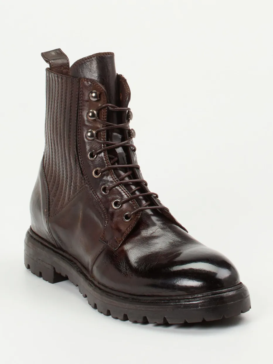 Herbsttauglicher Stil mit Anspruch.Die Marke Lemargo zeigt mit diesen Herren-Schnürboots charakterstarke Combat Boots aus maronenbraunem Büffelleder. Für einen souveränen Auftritt in der Stadt oder bei Outdoor-Aktivitäten: Das glänzende, anschmiegsame Leder verbindet maskuline Ästhetik mit Alltagstauglichkeit. Der knöchelhohe Schaft mit elastischem Rippstrick-Einsatz sorgt für passgenauen Halt, während die durchgenähte Gummisohle mit markantem Profil sicheren Grip liefert. Details wie Metallösen, Ton-in-Ton-Nähte und Zuglasche unterstreichen das Heritage-inspirierte Design mit Workwear-Note. Besonders gut kombinierbar zu Raw Denim und Lederjacke. Ein stilvoller Begleiter mit italienischem Qualitätsanspruch und funktionalem Komfort.