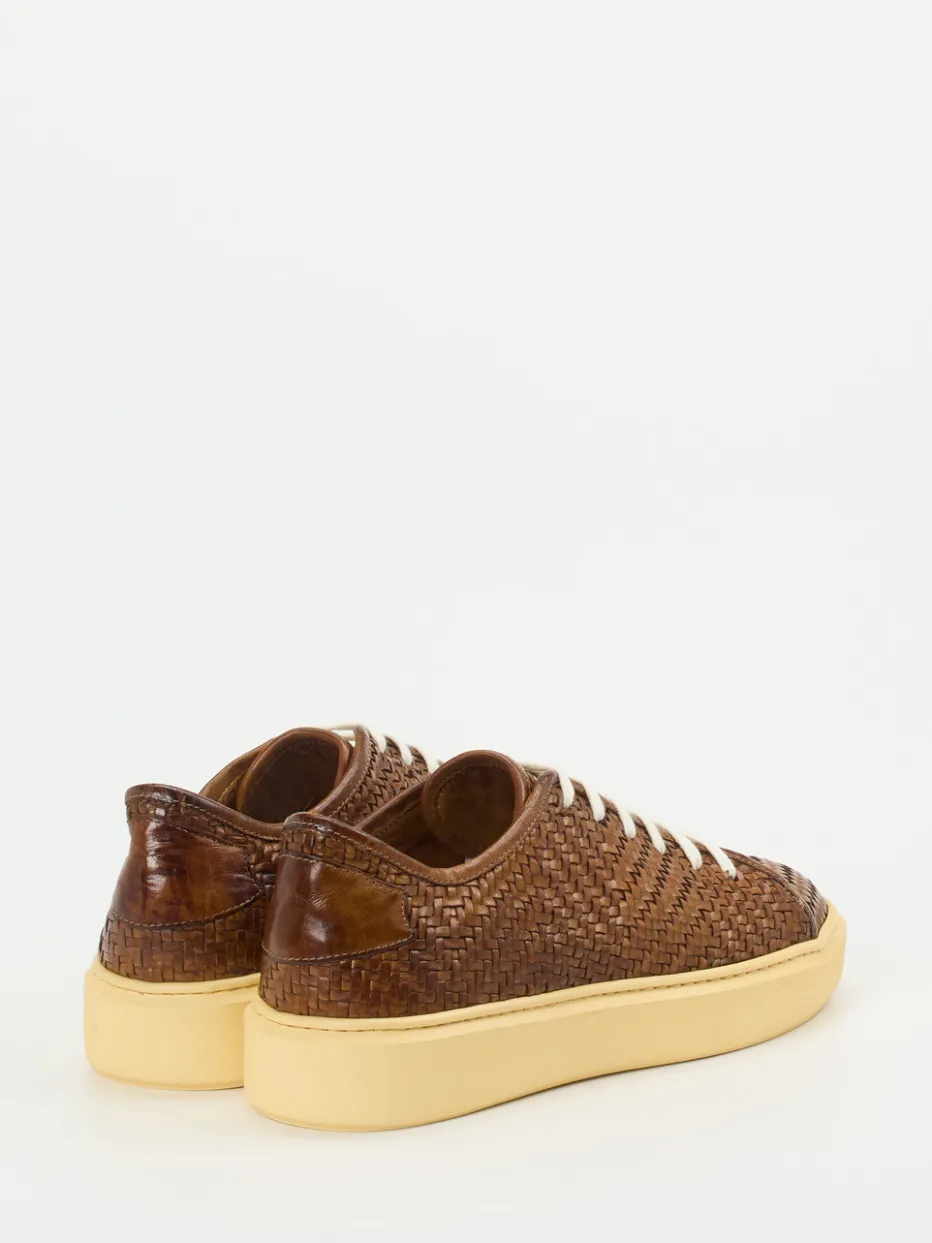 Sommerleicht und strukturiert gedacht.Lemargo interpretiert den klassischen Low-Top-Sneaker mit handwerklichem Anspruch und sommerlichem Ausdruck. Ideal für urbane Tage im Frühling und Sommer, überzeugt das Modell durch fein geflochtenes Leder mit dezentem Glanz in warmem Mittelbraun. Kontrastreich wirken die hellen Schnürsenkel und die weiche Gummisohle in Hellbeige, ergänzt durch eine glatte Fersenkappe. Die klare, rund-klassische Silhouette passt zum unaufdringlichen Stilanspruch der Quiet-Luxury-Ästhetik. Innen sorgen Lederfutter und ein gepolstertes Wechselfußbett für komfortables Gehen. Ein Sneaker, der Handwerk, Komfort und zeitlosen Stil nahtlos verbindet.
