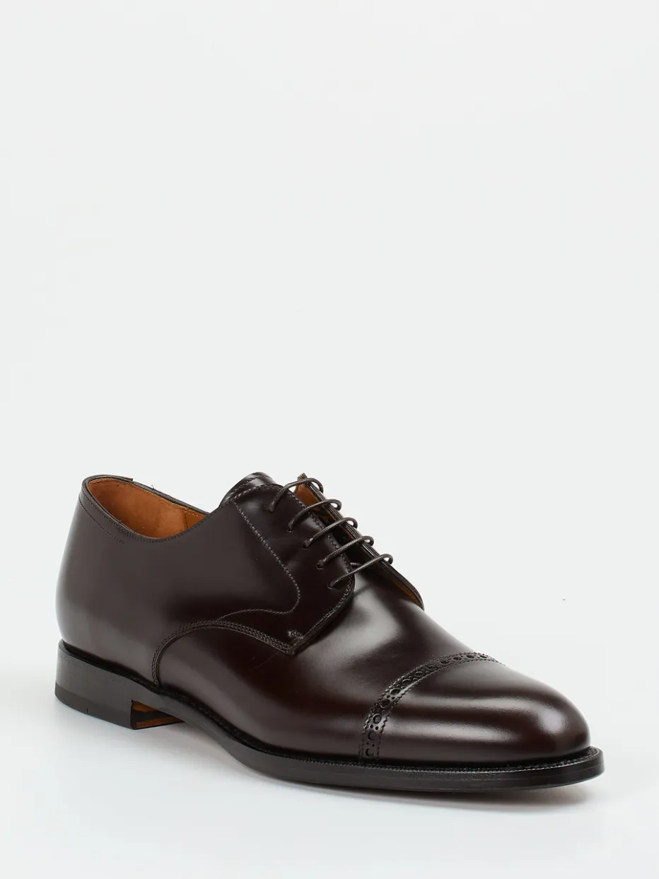 Feines Kalbleder, rahmengenäht verarbeitet und mit edlem Glanz – dieser Captoe-Derby überzeugt durch klassische Noblesse und dezente Broguing-Details.
