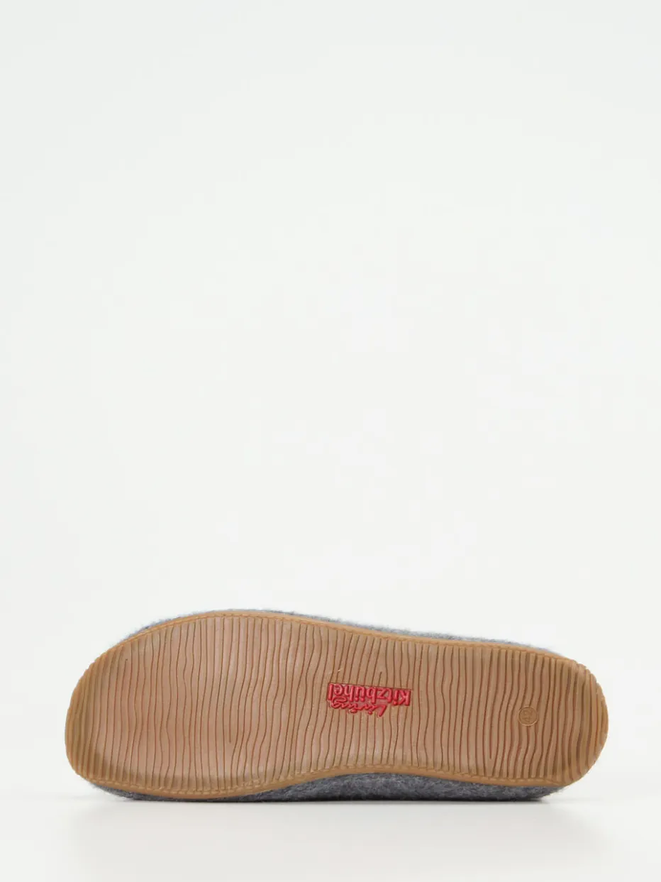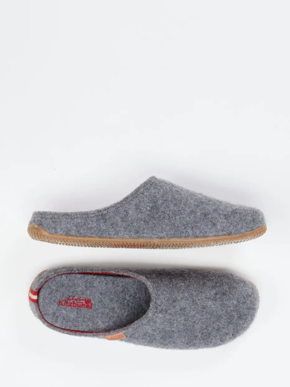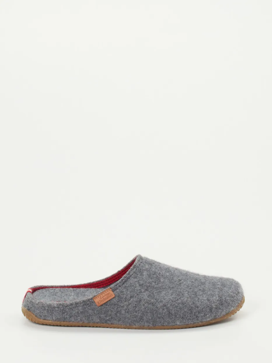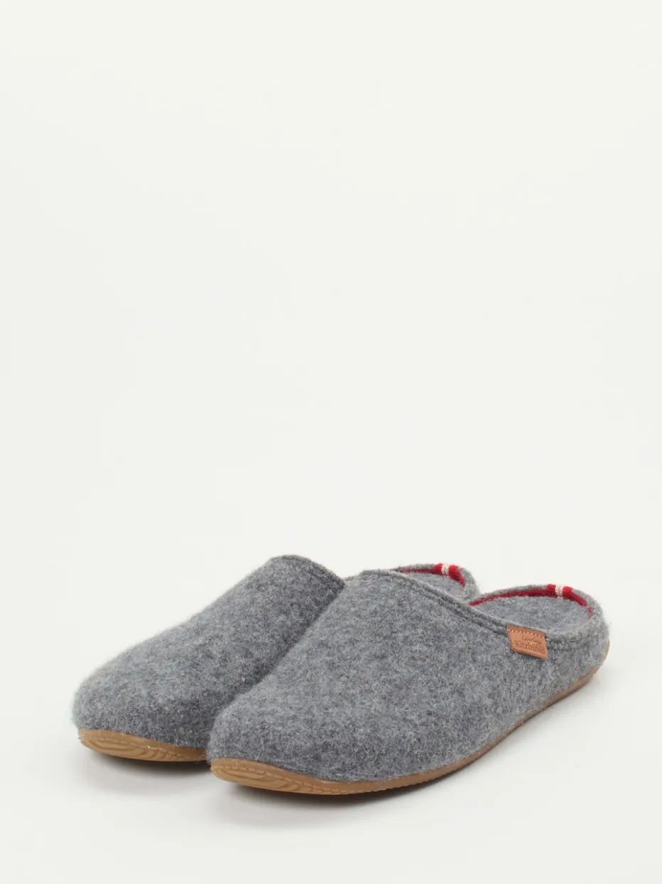 Natürlich warmer Hausschuhkomfort in alpiner Formensprache. Die Pantolette überzeugt mit hochwertiger Wollfilzqualität, rutschhemmender Gummisohle und entspanntem Design.