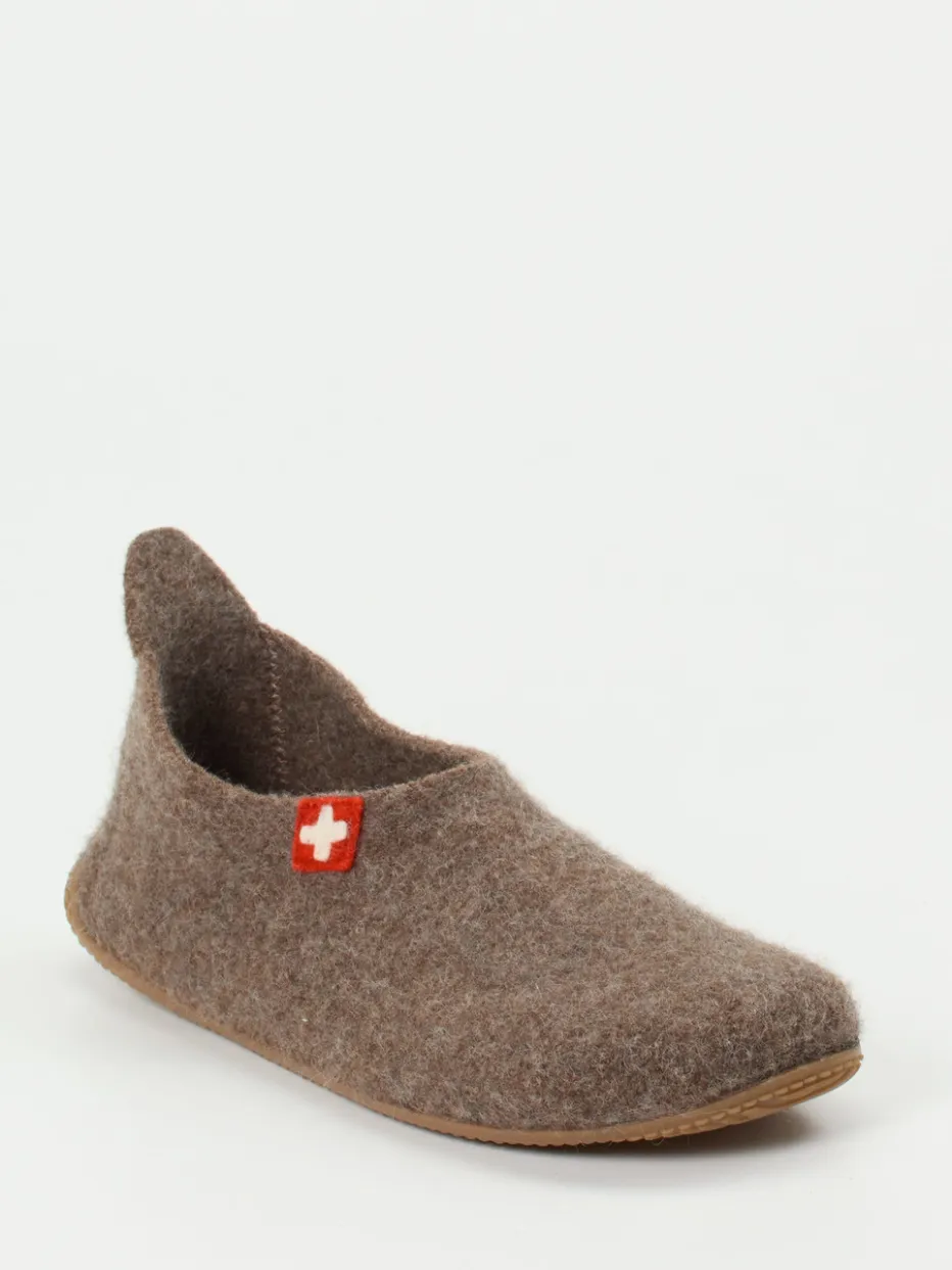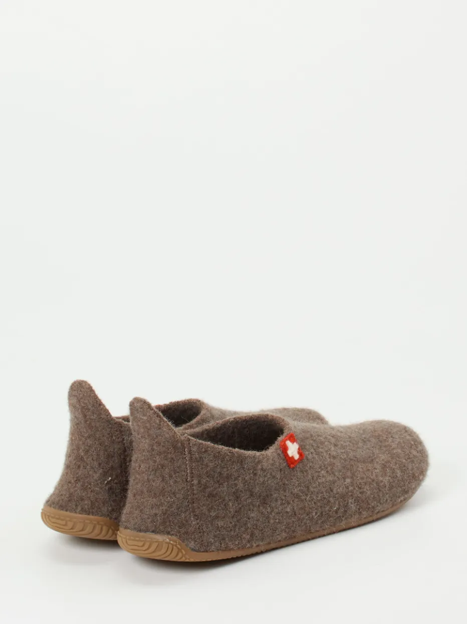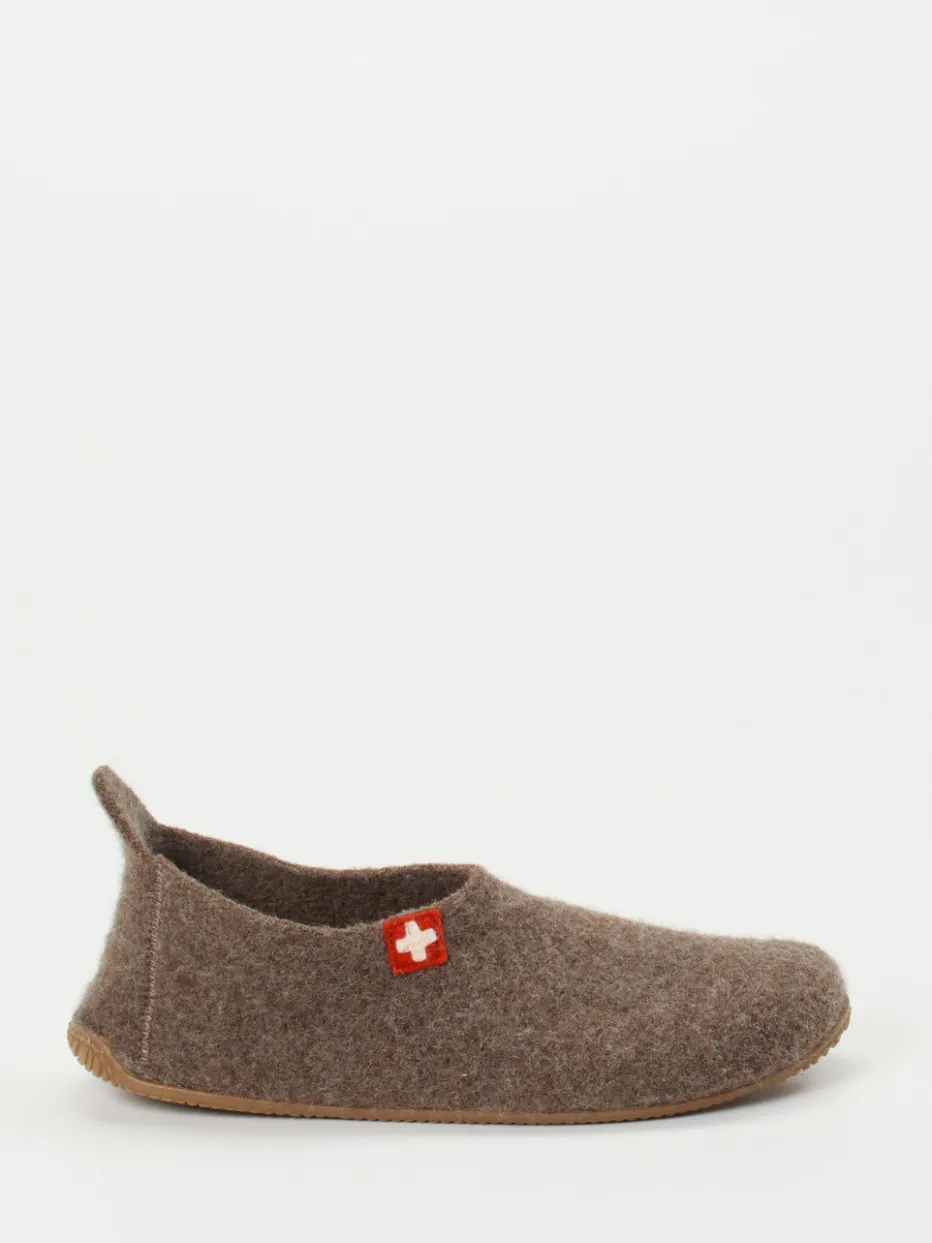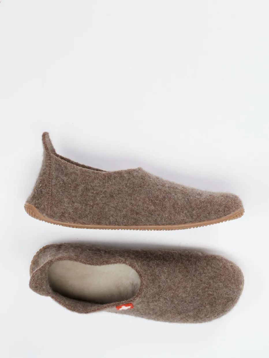 Reduziertes Design für pure Gemütlichkeit.Living Kitzbühel präsentiert komfortable Filzpantoffeln für entspannte Momente zu Hause. Die Unisex-Hausschuhe überzeugen in wohnlichem Mittelbraun mit 100 % Wollfilz, filzig-weicher Haptik und einer Innensohle aus echtem Lammfell. Ihre geschlossene, sockenähnliche Silhouette ermöglicht leichten Einstieg dank Zuglasche an der Ferse, während das rote Logo-Emblem markentypische Akzente setzt. Die flexible, rutschhemmende Gummisohle unterstützt den sicheren Tritt auf glatten Böden – ideal für „Natural Comfort“-Liebhaber und Slow-Living-Fans. Besonders harmonisch kombinierbar mit soften Loungewear-Farben. Natürlich wärmend und formstabil – für hyggeligen Komfort mit alpiner Handschrift.
