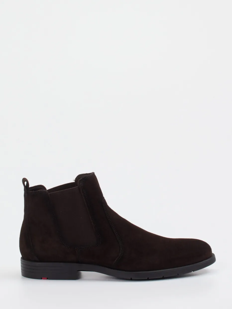 Stilsicher durch Herbst und Büro.Die Marke Lloyd präsentiert klassische Chelsea Boots für Herren mit dezentem Design und hohem Tragekomfort. Ob im Büroalltag oder bei herbstlichen City-Spaziergängen – das fein strukturierte, dunkelbraune Veloursleder mit matter Oberfläche sorgt für einen stilvoll-zeitlosen Auftritt. Seitliche Elastikeinsätze und eine praktische Schlupfform ermöglichen bequemes An- und Ausziehen, während die profilierte Gummisohle mit rotem Akzentstreifen rutschhemmende Sicherheit bietet. Die knöchelhohe Silhouette mit Ton-in-Ton-Nähten verleiht dem Schuh eine zurückhaltend maskuline Ausstrahlung, passend zu minimalistischen Business-Casual-Styles. Besonders gut kombinierbar mit Naturtönen wie einem edlen Kaschmirpullover. Reduziertes Design trifft auf präzise Verarbeitung – für authentische Qualität im Alltag.