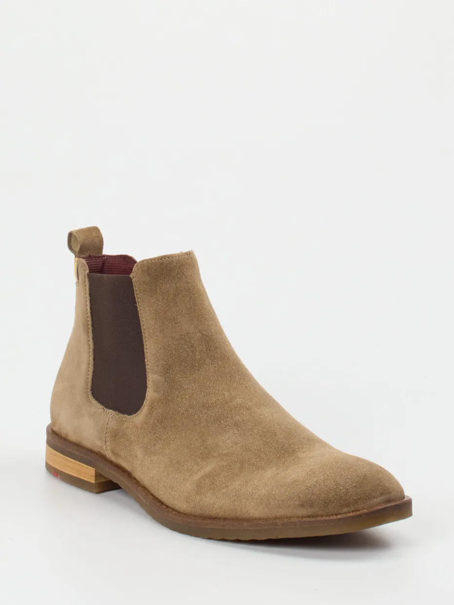 Feinstes sandbraunes Veloursleder und ein klassischer Schnitt verleihen diesem Chelsea Boot von Lloyd seinen eleganten Charakter – zeitgemäß interpretiert mit subtilen Farbakzenten.