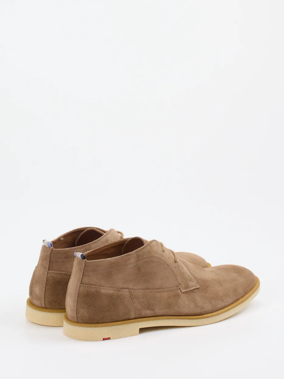 Die Herren-Desert Boots von Lloyd vereinen klassisches Design mit smartem Understatement. Gefertigt aus hochwertigem Veloursleder, das samtig angeschliffen und in einem edlen Sandbeige gehalten ist, präsentieren sie sich knöchelhoch mit zwei dezenten Ösen und Ton-in-Ton-Nähten. Die helle Gummisohle, der sanft abgerundete Leisten und eine feine Fersenlasche mit Streifendetail unterstreichen den klaren Look. Die Lederfütterung sorgt für angenehmen Tragekomfort – ideal für Alltag wie Büro. Ein Schuh im Zeichen von „Quiet Luxury“ und Natural Tones.