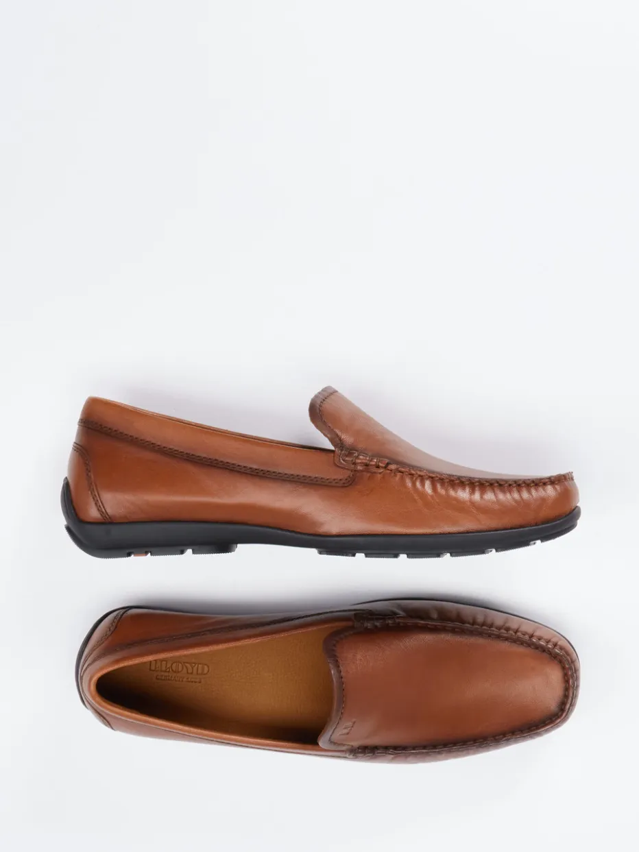 Hochwertig verarbeitetes Kalbleder und klassisches Design vereinen sich bei diesem Lloyd-Loafer zu einem stilvollen Begleiter für Büro und Freizeit.