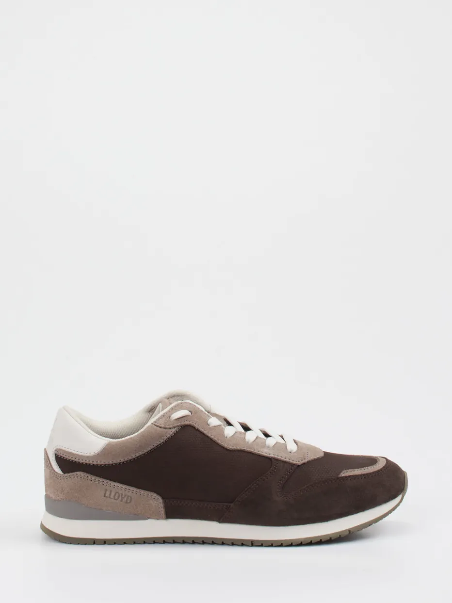 Sportiver Stil mit Vintage-Flair.Lloyd präsentiert einen trendbewussten Herren-Sneaker im Retro-Runner-Stil. Für entspannte Tagesausflüge oder legere Bürolooks bietet das Modell eine gelungene Verbindung aus strukturiertem Nubukleder und samtig angeschliffenem Veloursleder. Die braune Grundfarbe wird harmonisch durch beigetönige Akzente und ein weißes Fersenpatch ergänzt. Die klassische Runner-Silhouette, gepolsterte Elemente und das atmungsaktive Textilfutter garantieren hohen Tragekomfort. Stilistische Details wie tonige Nähte und Logo-Prägungen unterstreichen die modische Authentizität. Besonders im angesagten Tonal Layering Style kombinierbar mit schlichten Chinos oder soften Jogpants. Ein stilsicherer Hybrid aus Retro-Ästhetik und modernem Tragekomfort.