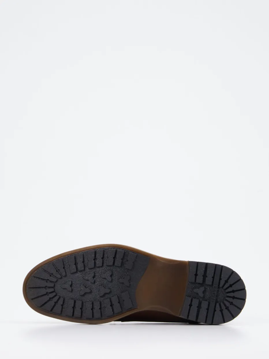 Bei wechselhaftem Wetter sorgt die GoreTex-Ausstattung für Schutz vor Nässe und Wind, während das weich wärmende Wollfutter Komfort bietet. Das dunkelbraune Kalbleder begeistert mit glanzvollem Finish, harmoniert mit bronzefarbenen Ösen und setzt durch kontrastierende Nähte handwerkliche Akzente. Die klassische, knöchelhohe Form mit robuster Profilsohle verbindet Funktionalität mit maskulinem Designanspruch und passt in Büro wie Freizeit. Besonders stimmig zu hellen Kaschmirpullovern oder dunklen Wollhosen.