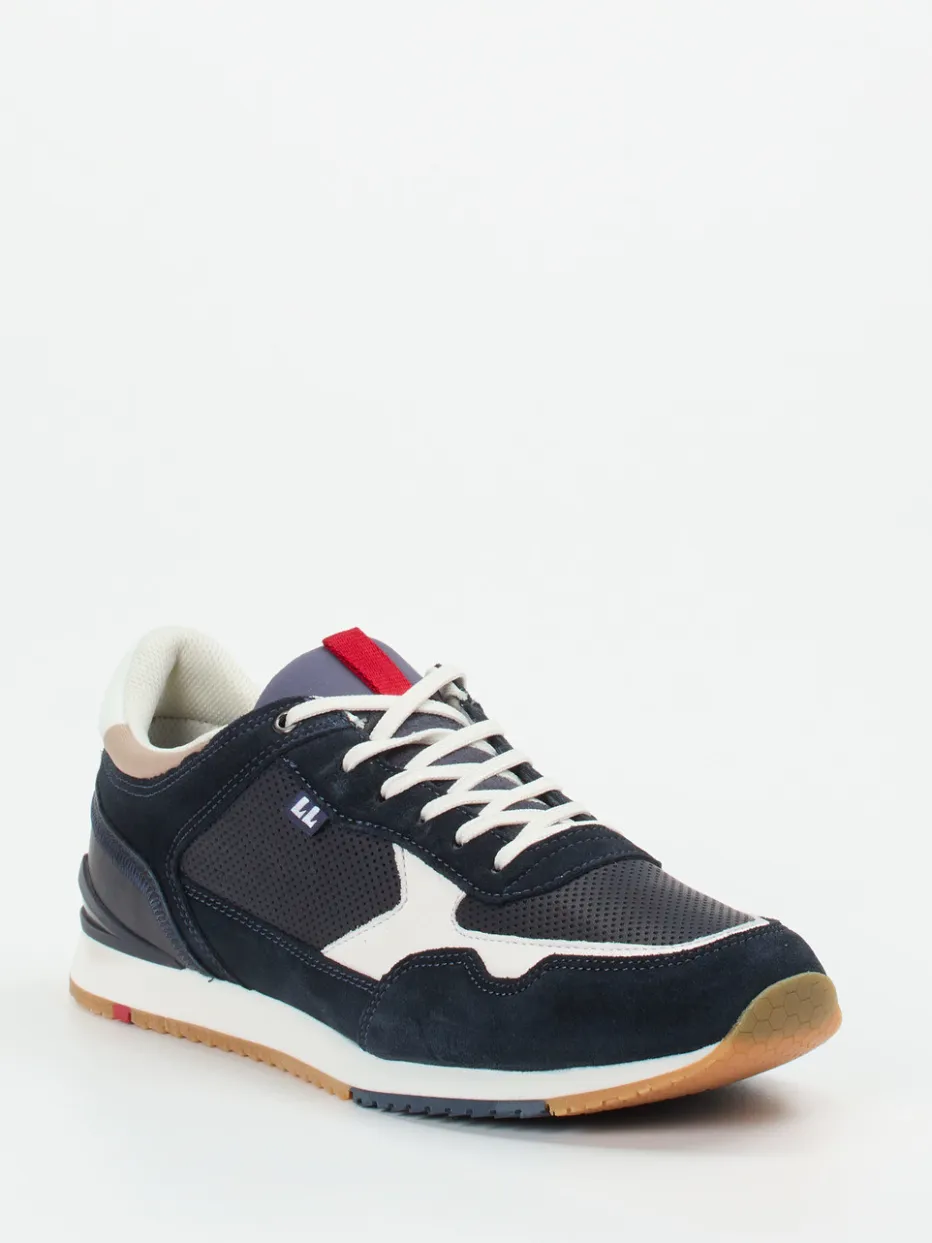 Der Retro-Sneaker von Lloyd kombiniert atmungsaktives Mesh mit geprägtem Veloursleder zu einem sportlich-maritimem Streetwear-Highlight.