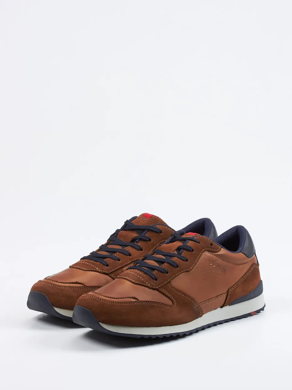 Retro-inspiriertes Design in Premiumleder.Lloyd bringt mit diesem Sneaker für Herren sportliche Lässigkeit auf klassisch inspirierte Weise in den Alltag. Ob bei entspannten Stadtbummeln oder im Büro mit Dresscode-Spielraum – die Kombination aus cognacbraunem Kalbleder und samtig strukturiertem Veloursleder vermittelt Hochwertigkeit und Charakter. Dunkelblaue Kontraste und rote Akzente unterstreichen die dynamische Silhouette im Laufe der Heritage Running-Trends. Die rutschhemmende, farblich abgesetzte Gummisohle und der weich gepolsterte Kragen sorgen für Stabilität und Komfort im täglichen Einsatz. Stilvoll in Kombination mit Denim und Basic-Shirts. Lloyd-typischer Tragekomfort trifft auf modische Sportlichkeit mit urbanem Anspruch.