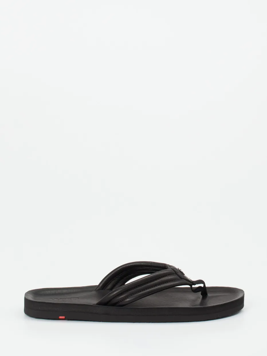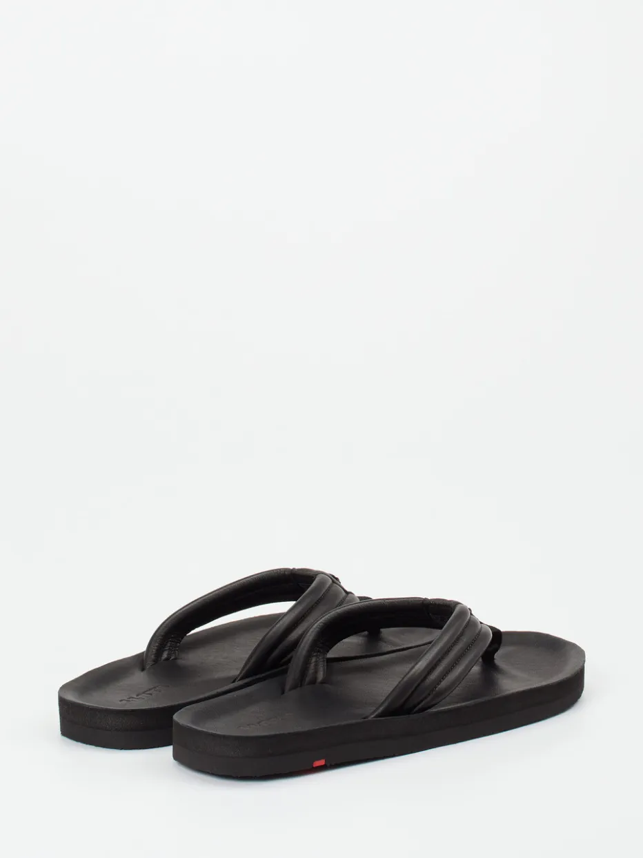 Dieser Zehentrenner aus hochwertigem Kalbleder überzeugt durch gepolsterte Riemen und eine griffige Gummisohle – ideal für stilbewusste Freizeitlooks mit Komfortanspruch.