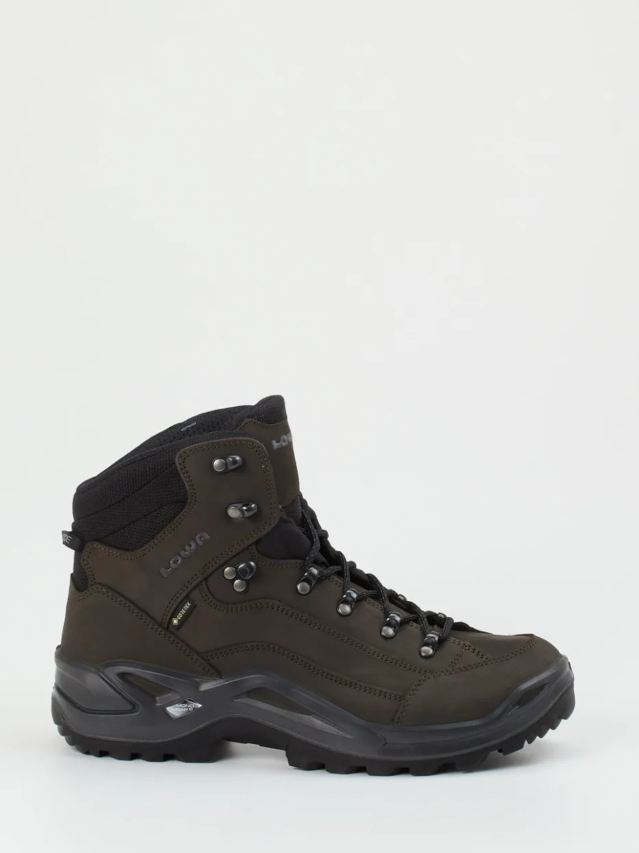 Robust ausgerüstet für jedes Terrain.Lowa präsentiert klassische Trekkingstiefel für Outdoor-Vorhaben und Alltagstauglichkeit. Der knöchelhohe Wanderschuh erfüllt höchste Ansprüche an Schutz und Komfort bei Wanderungen. Sein Obermaterial aus Nubukleder ist samtig angeschliffen und mit einer GORE-TEX-Membran ausgestattet – wind- und wasserdicht bei jeder Wetterlage. In Dunkeloliv mit schwarzen und anthrazitfarbenen Akzenten gehalten, wirkt der Schuh funktional und modern. Details wie Hakenösen-Schnürung, gepolsterter Schaft und Vibram-Gummisohle unterstreichen die robuste Outdoor-DNA. Ideal für Fans von Utility-Trends wie Gorpcore oder „Quiet Performance“. Kombiniert mit Funktionsjacke und Technical Pants entsteht ein souveräner Look. Performance trifft auf langlebige Qualität – typisch Lowa.