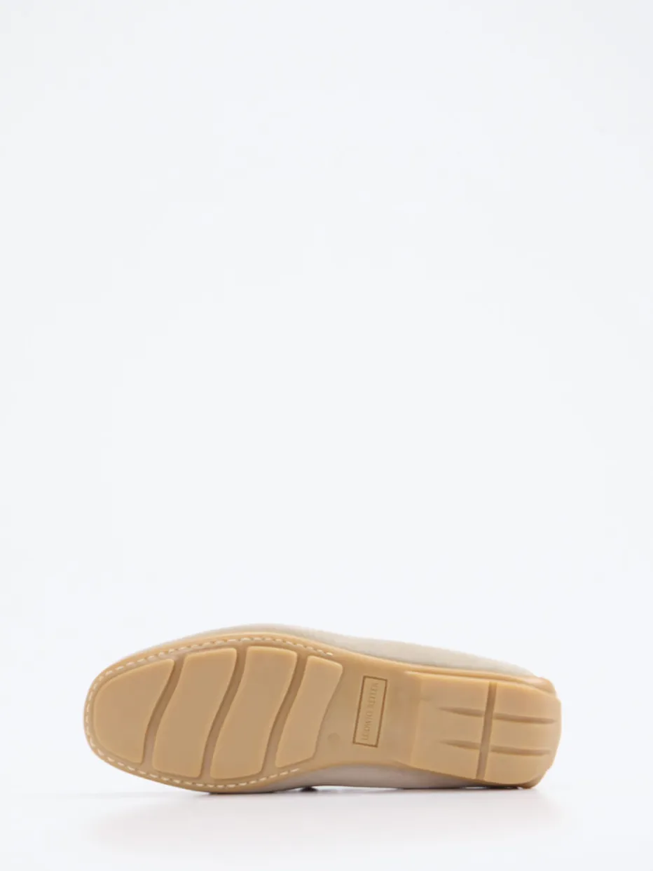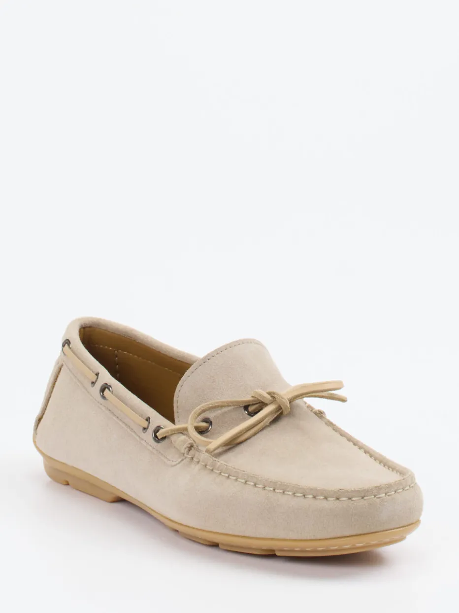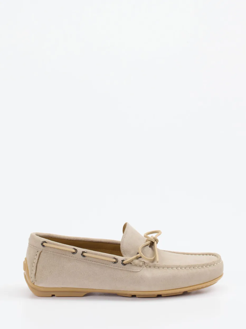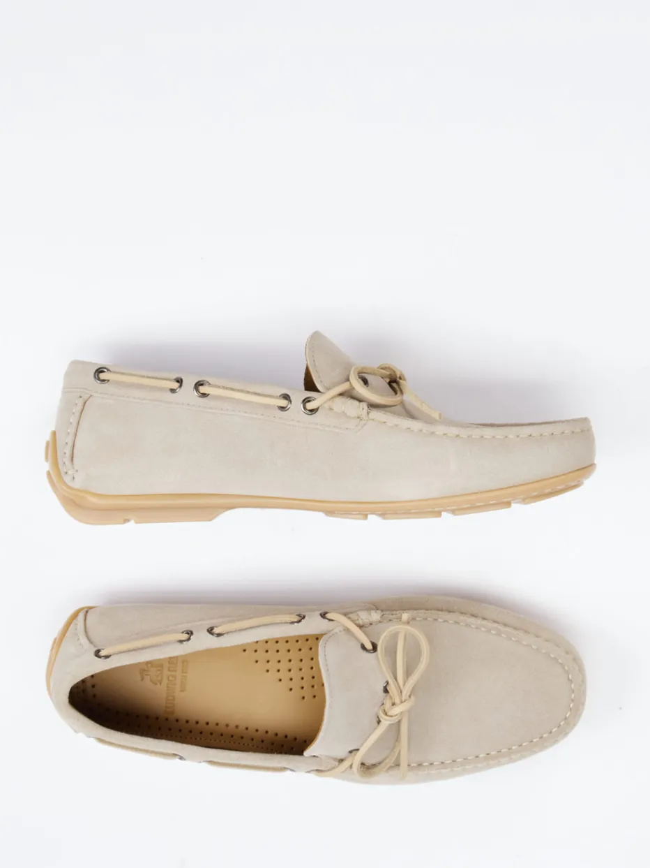 Klassischer Sommer-Mokassin in sandigem Veloursleder mit preppy Design und hochwertiger Gummisohle – stilvoller Komfort für entspannte Stunden.