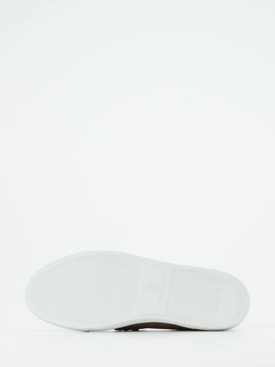 Moderne Eleganz trifft auf lässigen Komfort.Der Herren-Slipper von Ludwig Reiter vereint feinste Handwerkskunst mit stilvollem Minimalismus. Ideal bei wechselnden Alltagssituationen eignet sich der flach profilierte Loafer-Sneaker-Hybrid für Büro wie Freizeit. Gefertigt aus taupebraunem Veloursleder, das sich samtig weich anfühlt, ergänzt durch ein Innenfutter aus Kalbleder und gepolstertes Fußbett, bietet er einen hohen Tragekomfort. Die klare Silhouette mit strukturierter Penny-Loafer-Blende und weißer Gummisohle verleiht dem Modell seine moderne Ausstrahlung. Der Schlupfschuh ist von Streetwear und Quiet Luxury gleichermaßen inspiriert – perfekt zu Chino oder Strick. Langlebige Qualität und dezente Raffinesse aus dem Hause Ludwig Reiter.
