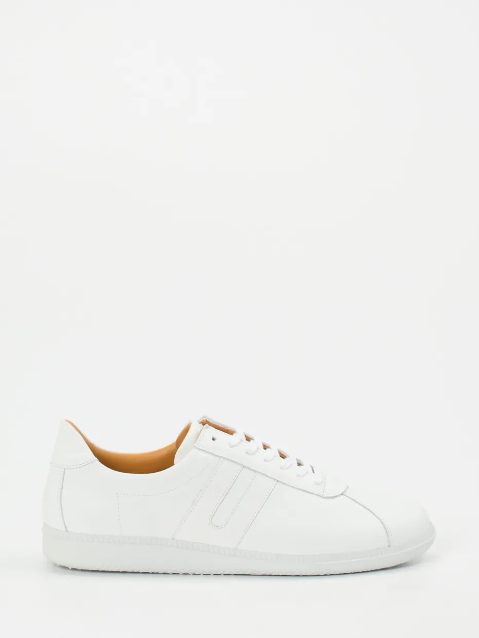 Clean Design trifft Handwerkskunst.Ludwig Reiter präsentiert mit diesem weißen Low-Top-Sneaker ein Modell für minimalistische Looks mit Understatement. In Alltag und Business-Casual-Situationen überzeugt das Modell durch hochwertiges Kalbleder mit natürlicher Narbung und glatter Haptik. Die klassische Flachschnittform, eine Ton-in-Ton-Schnürung sowie die strukturierte Gummisohle unterstreichen den „Quiet Luxury“-Trend. Weiches Kalblederfutter und ein gepolsterter Einstieg sorgen für einen angenehmen Tragekomfort. Passend zu cleanen Outfits, ideal kombinierbar mit weißem Stricksweater oder Cropped Chino. Zeitlose Ästhetik in meisterlicher Verarbeitung – Ludwig Reiter steht für stilvollen Minimalismus.