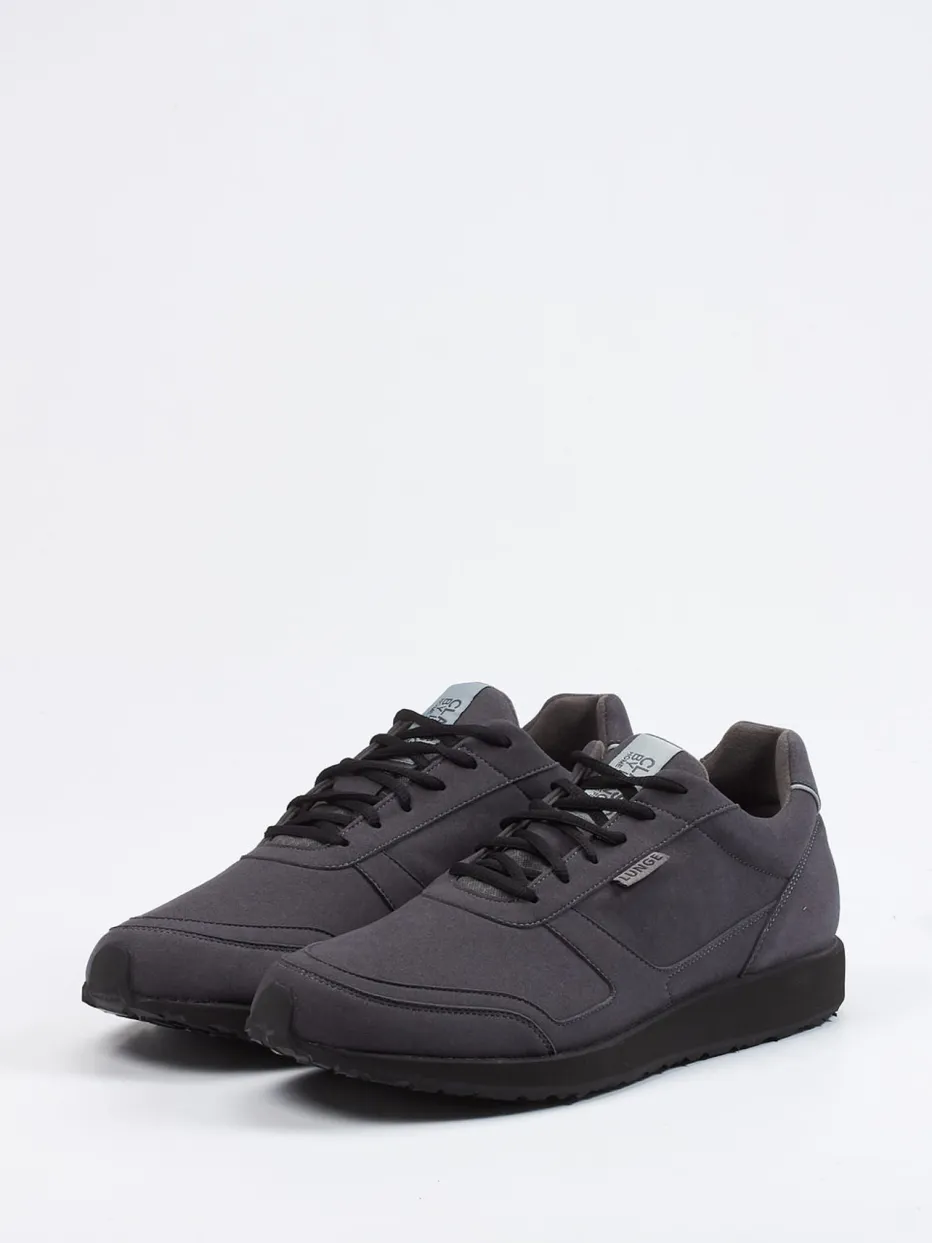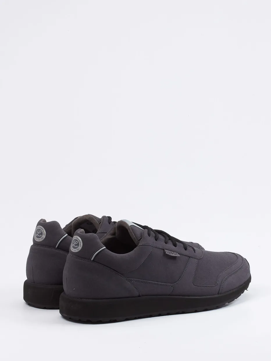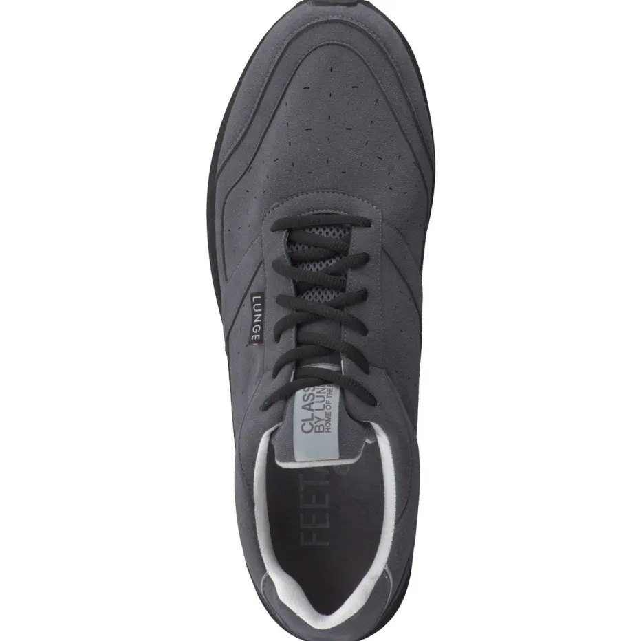 Urbaner Komfort trifft Funktion.Der Sneaker aus dem Hause Lunge vereint Alltagstauglichkeit und modernes Streetwear-Design. Ideal für das urbane Umfeld oder sportlich-entspannte Aktivitäten bietet er mit seinem weichen Textil-Obermaterial in Velourslederoptik angenehmen Tragekomfort. In Anthrazitgrau gehalten, zeigt er eine klare Silhouette mit matt strukturierter Oberfläche, Schnürung und dezent reflektierenden Details an Zunge und Ferse. Die ergonomisch profilierte Gummisohle fördert sicheres Auftreten, während perforierte Partien für Atmungsaktivität sorgen. Die dezente Retro-Runner-Ästhetik kommt Minimalismus-Liebhabern entgegen. Vegan, pflegeleicht und für vielseitige Style-Kombinationen geschaffen – Qualität im typischen Lunge-Stil.
