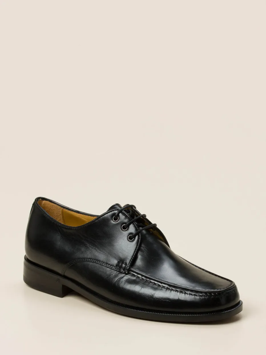 Der hochwertig verarbeitete Derby aus feinem Ziegenleder überzeugt mit minimalistischer Linie und makellosem Finish. Ideal für formelle Looks im Stil von Quiet Luxury.