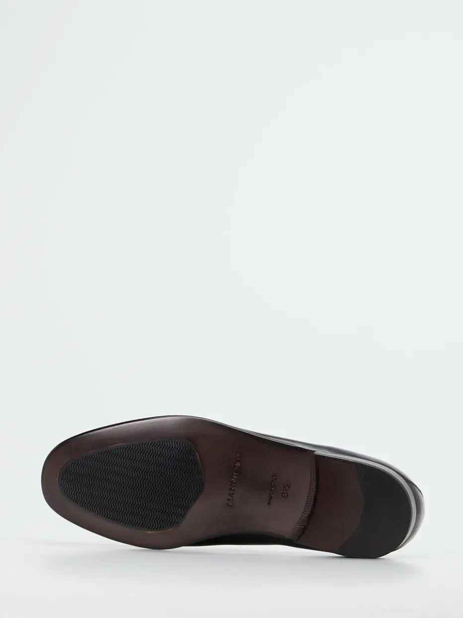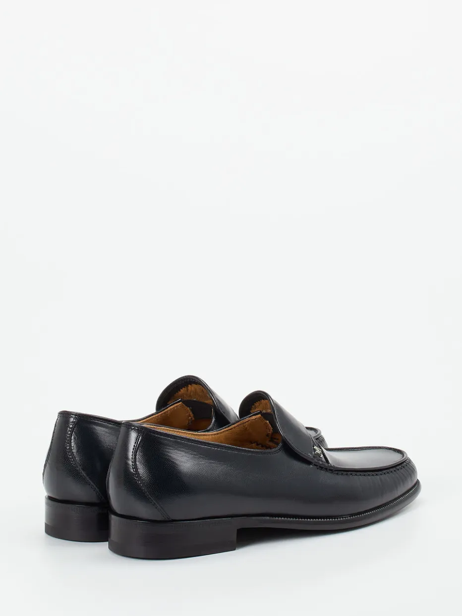 Ein klassisch inspirierter Penny Loafer mit glänzendem Finish, dessen italienische Handwerkskunst und dezente Details stilvolle Akzente im Business-Alltag setzen.
