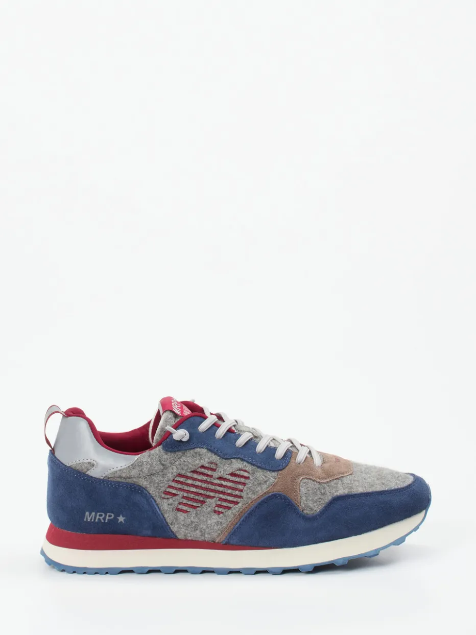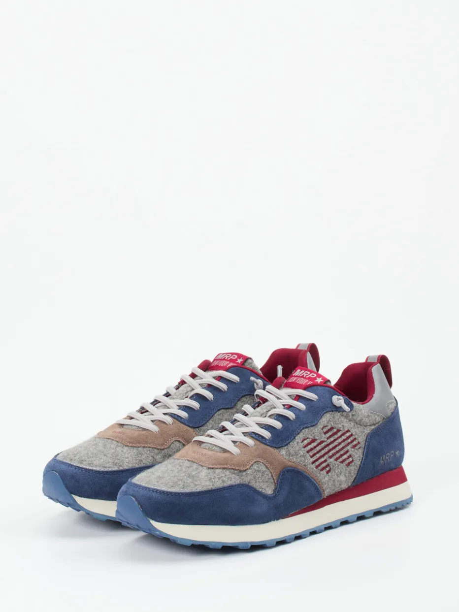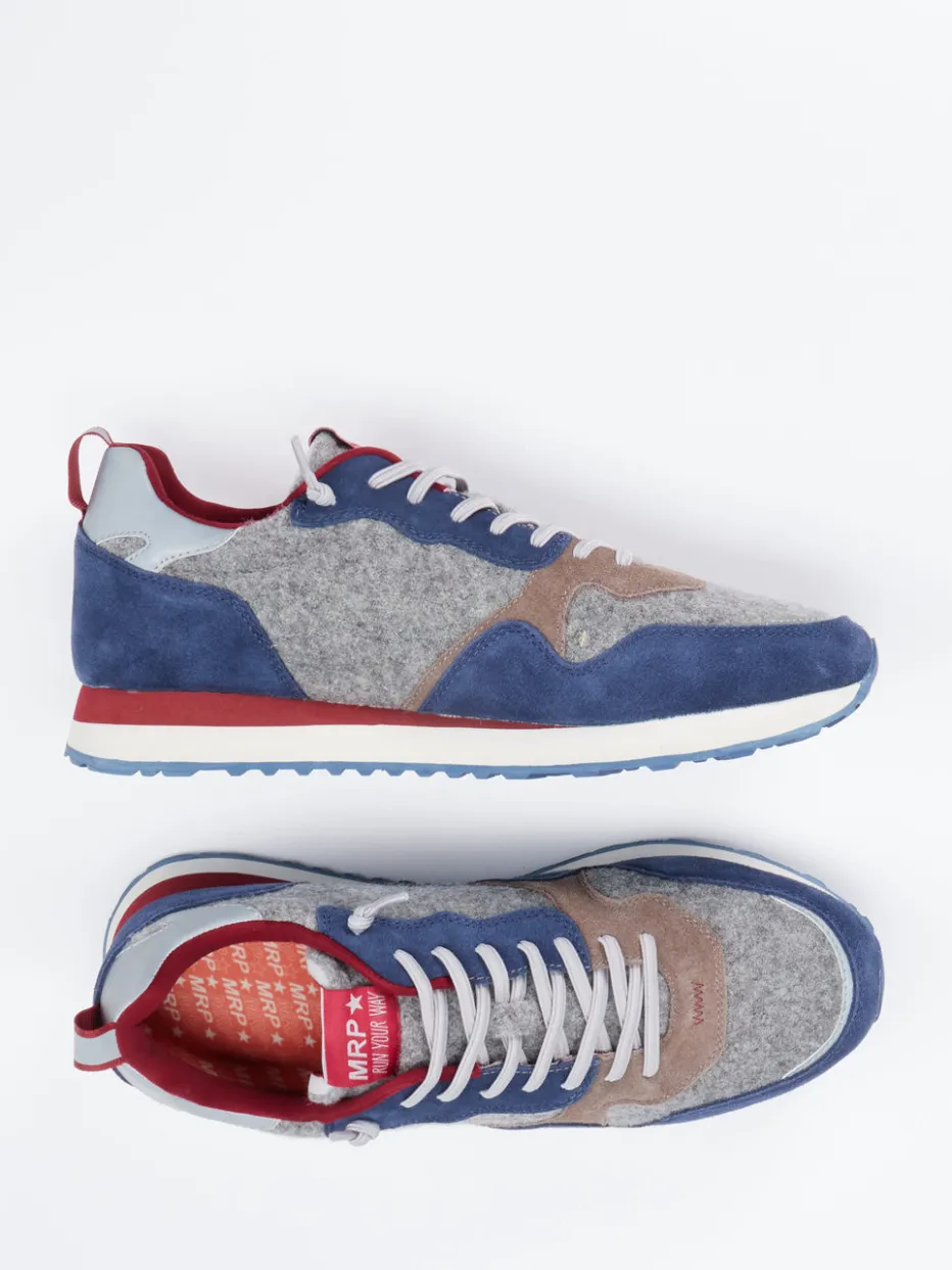 Ideal für aktive Tage in der Stadt vereint das Modell ein Materialmix aus Velourleder und Filz mit Textilfutter. Die dominante graue Farbgebung wird durch kontrastierende Akzente in Dunkelblau und Rotbraun betont. Eine Schnürung sorgt für guten Halt, während die profilierte blaue Gummisohle besonders griffig wirkt. Zunge und Ferse tragen markentypische Branding-Elemente, Color-Blocking unterstreicht den Trendfaktor. Kombiniert mit sportlichen Socken oder urbaner Freizeitkleidung entsteht ein lässiger Streetstyle.