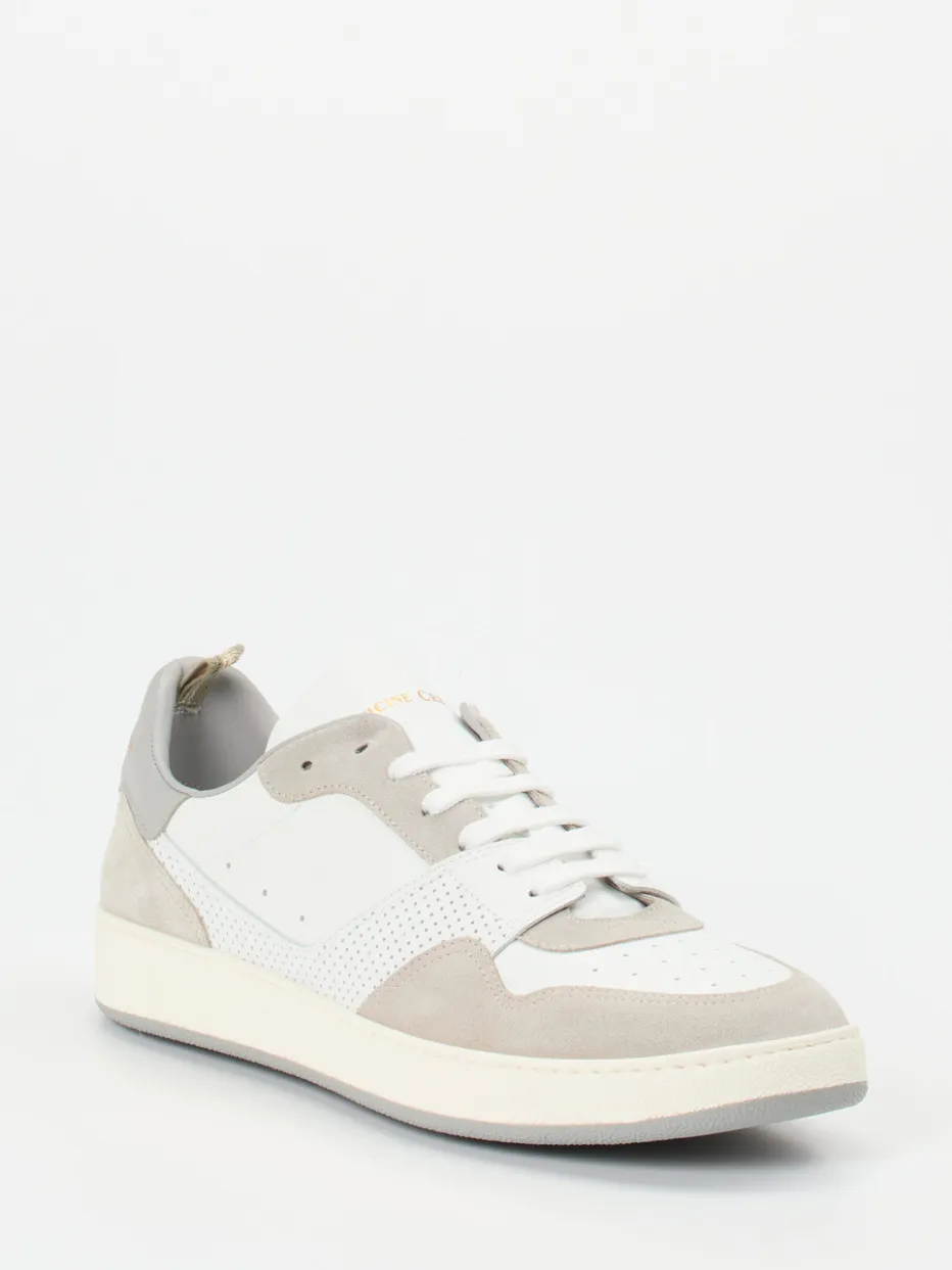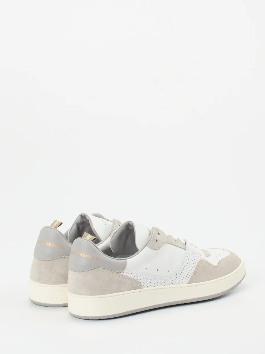 Stilvoller Minimalismus mit feinem Materialspiel.Officine Creative bringt mit diesem Sneaker ein Modell für markenbewusste Alltagsästhetik. Sein hochwertiger Materialmix aus glatt verarbeitetem Kalbleder und samtigem Veloursleder in Weiß und Hellgrau verbindet cleane Linien mit dezenter Struktur. Goldfarbene Logodetails auf Ferse und Zunge betonen den Anspruch an „Quiet Luxury“. Perforierte Seitenelemente verstärken nicht nur das Design, sondern steigern auch den Tragekomfort. Die Gummisohle mit hellgrauer Profilschicht bietet sicheren Halt für den urbanen Alltag. Stilistisch passt der Low-Top ideal zu Naturtönen, Chinohosen oder Oversize-Sweatern. Ein Sneaker mit Understatement und Qualitätsanspruch, wie ihn Officine Creative definiert.