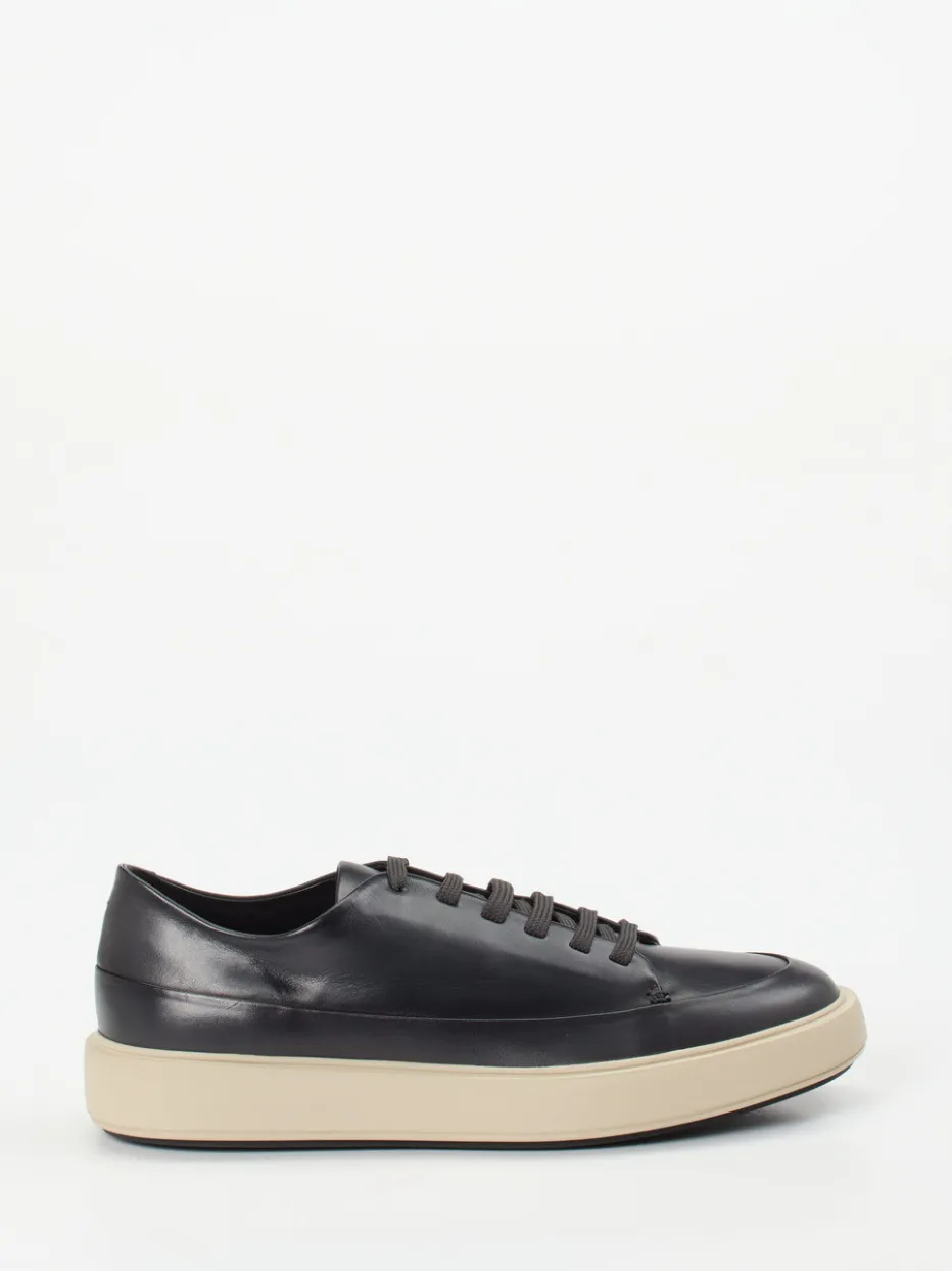 Dieser Low-Top-Sneaker verbindet luxuriöses Lammleder mit minimalistischer Formsprache und monochromem Kontrast. Ideal für stilbewusste Looks zwischen Streetstyle und Business-Casual.