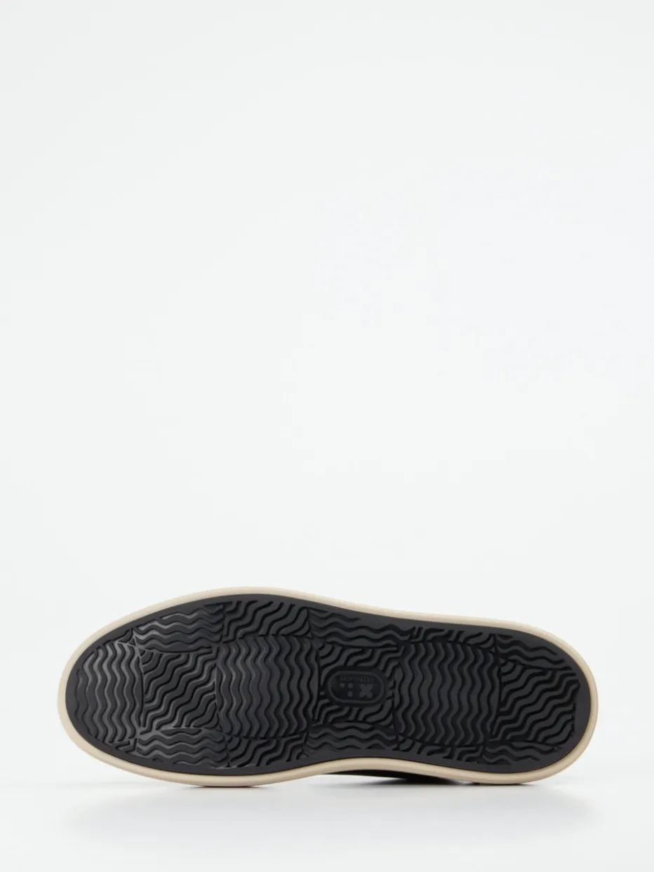 Markanter Minimalismus trifft feine Handarbeit.Officine Creative präsentiert mit diesem Sneaker ein Unisex-Modell der Extraklasse. Für urbane Wege und stilvolle Alltagsoutfits überzeugt das Modell mit hochwertigem, matt schwarzem Lammleder, ergänzt durch eine cremefarbene Kontrastsohle, die visuelle Klarheit schafft. Die klassische, abgerundete Silhouette mit tonalen Schnürsenkeln unterstreicht den puristischen Charakter. Im Inneren bietet ein Kalblederfutter erstklassigen Komfort. Die rutschhemmende Gummisohle ergänzt Funktion und Alltagstauglichkeit. Streetwear trifft Understatement – ein Highlight für die „Quiet Luxury“-Ästhetik. Ein urbaner Essential mit handwerklicher Raffinesse und stilsicherer Zurückhaltung.
