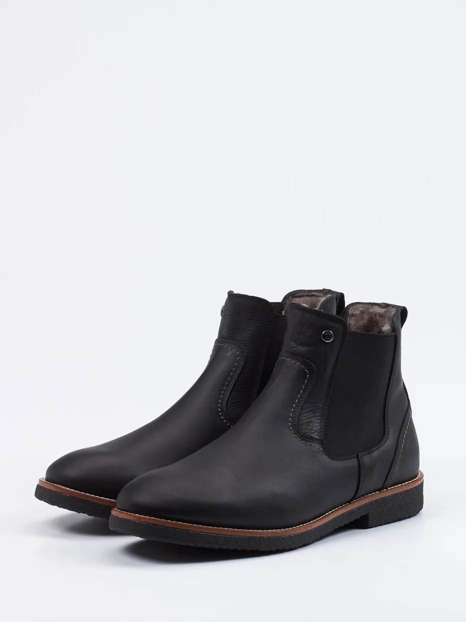 Dieser klassisch geschnittene Chelsea Boot von Panama Jack verbindet hochwertiges Fettleder mit warmem Komfort für die kalte Jahreszeit.