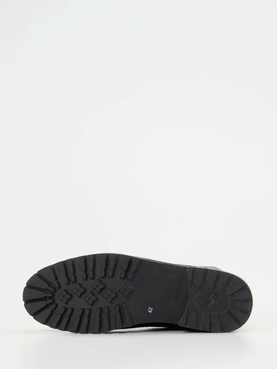 Für kalte Tage und unwegsames Gelände ideal: Das wind- und wasserbeständige schwarze Fettleder bekommt durch die matte Oberfläche eine edle Tiefe. Innen sorgt echtes Lammfell für angenehme Isolierung. Metallösen, Zuglasche und seitliche Logoprägung runden das robuste Design ab. Dank der griffig profilierten Gummisohle mit Holzoptik-Schicht bieten die Boots sicheren Tritt – ob urban oder outdoor. Der Look lässt sich ideal mit Denim oder Chino kombinieren.