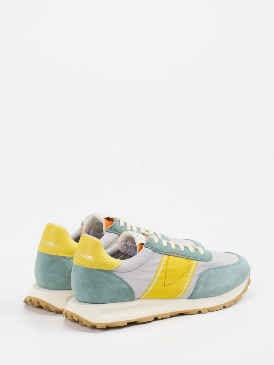 Ein Klassiker neu interpretiert.Philippe Model präsentiert mit diesem Sneaker einen Retro-Runner für die Freizeit. Ideal für entspannte Tage in der Stadt oder unterwegs im Urlaub: Das Modell kombiniert Salbeigrünes Veloursleder, samtig angeschliffen, mit luftigem Nylon in sonnigem Gelb und Hellgrau. Die profilierte Gummisohle sorgt für Halt, kontrastfarbene Nähte und ein Logo-Patch setzen markante Akzente. Mit klassischer Silhouette und Schnürverschluss überzeugt der Schuh durch modische Vielseitigkeit und Retro-Charme. Besonders stimmig zu lässigen Streetwear-Outfits oder sommerlichen Casual-Looks. Philippe Model vereint italienisches Designgefühl mit funktionalem Komfort für den urbanen Alltag.