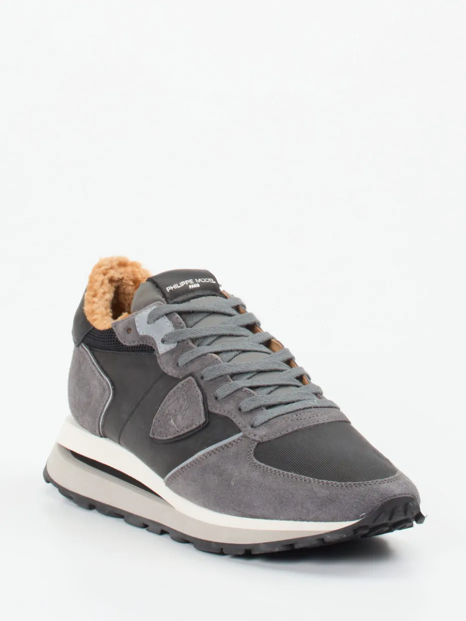 Warmer Komfort für kühlere Tage.Philippe Model präsentiert einen hochwertigen Sneaker für Herren aus weichem Veloursleder. Ideal für den Winteralltag, bietet das Modell durch sein warmes Innenfutter aus Kunstfell und die profilierte Gummisohle ein Plus an Komfort und Trittsicherheit. Die Oberfläche wirkt durch mattes Veloursleder besonders edel, die anthrazitgraue Farbgebung unterstreicht den urbanen Charakter. Tonale Nähte, klassisch-schlanke Silhouette und dezente Logo-Prägung sorgen für ein stilvolles Gesamtbild. Der Look greift Retro Running-Elemente auf und ergänzt mühelos lässige Streetwear-Outfits. Philippe Model kombiniert markentypisches Design mit wetterfestem Stilgefühl.