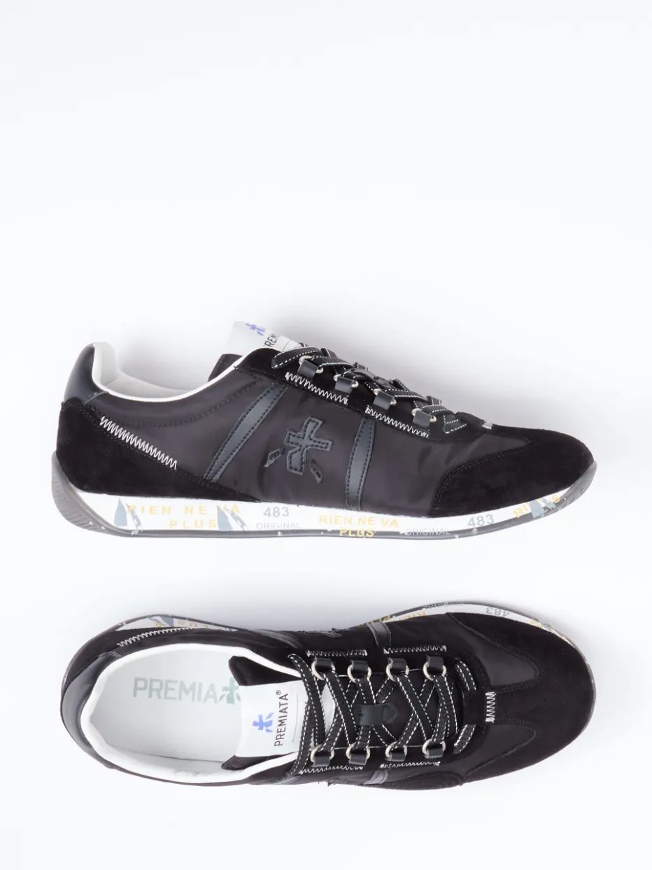 Der Mix aus samtigem Veloursleder und sportivem Nylon macht diesen Premiata-Sneaker zum modernen Begleiter für urbane Streetstyles mit Retro-Charakter.