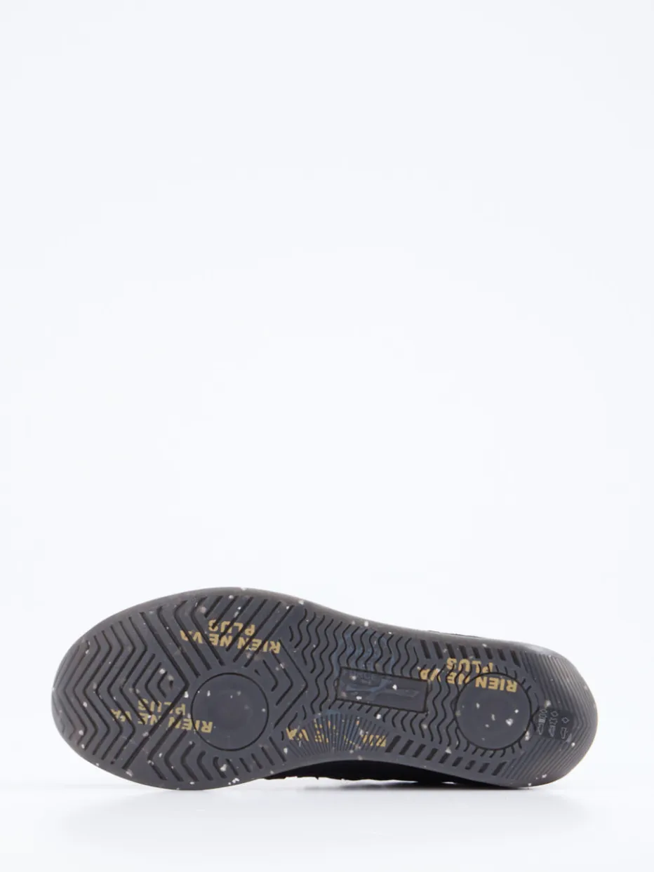 Retro-Dynamik trifft Materialkontrast.Premiata interpretiert den klassischen Low-Top Sneaker für Herren neu. Ob beim Stadtbummel oder auf dem Weg ins Gym – dieser Sneaker kombiniert tiefschwarzes Veloursleder, samtig angeschliffen, mit robustem Nylon für einen ausdrucksstarken Look. Die sportlich-dynamische Silhouette wird durch reflektierende Schnürsenkel, Metallösen und eine kontrastreich bedruckte Laufsohle im Retro-Stil akzentuiert. Markentypische Logos an Seite und Zunge setzen zusätzliche Statements. Der Materialmix sorgt für Komfort und Alltagstauglichkeit – ideal zu Jogpants und Streetwear-Jacke. Premiata verbindet luxuriöse Verarbeitung mit progressivem Designanspruch.