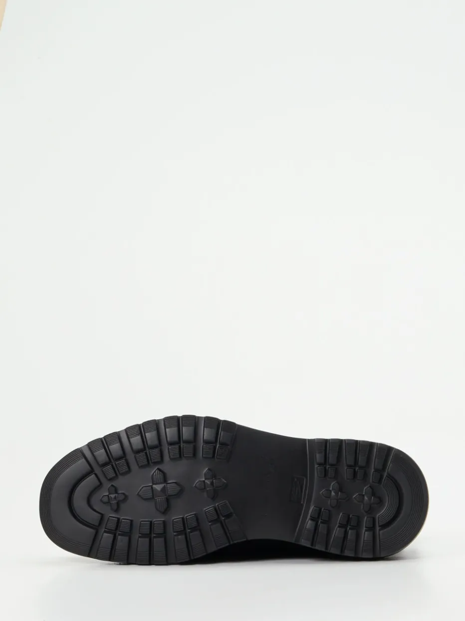 Stilpräzision im Minimalismus.Die schwarzen Chelsea Boots von Ralph Harrison verbinden weiches Nubukleder mit klarer Linie. Ihr samtig angeschliffenes Obermaterial wird durch seitliche Elastikeinsätze und Zuglaschen ergänzt. Das Design zeigt sich in mattem Finish und Ton-in-Ton-Optik – reduziert und dabei markant. Die knöchelhohe Silhouette verläuft sanft rund, die stark profilierte Gummisohle greift aktuelle Heavy-Sole-Trends auf und verspricht Stabilität im urbanen Alltag. Gut kombinierbar mit Wollmantel oder Cordhose. Ralph Harrison steht hier für souveränen Komfort mit zeitloser Aussagekraft.