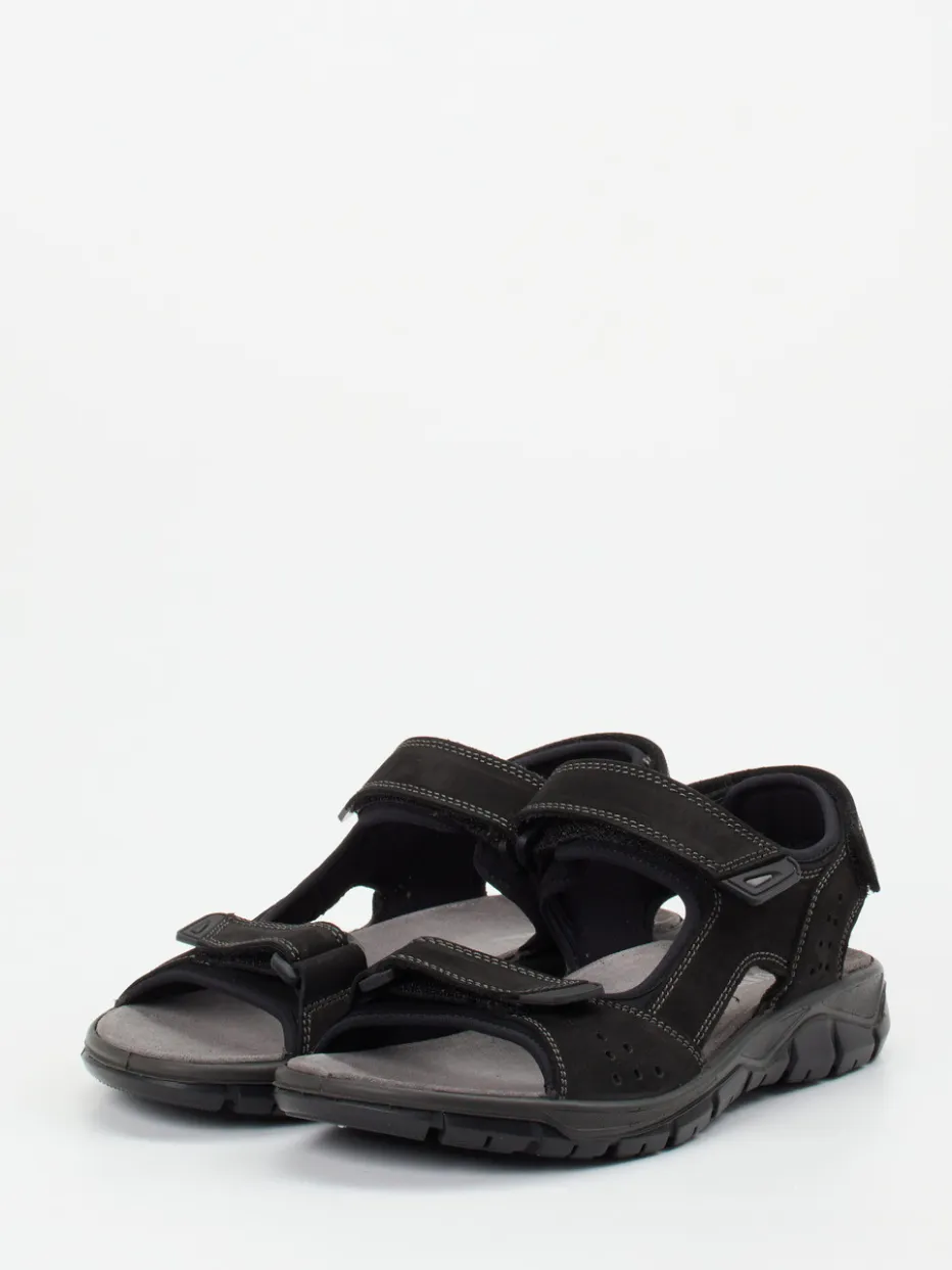 Komfortabler Halt für aktive Tage.Ralph Harrison Country präsentiert eine Herren-Trekkingsandale, die Funktionalität und Komfort vereint. Ideal für Wanderungen oder entspannte Freizeitstunden im Sommer überzeugt das Modell mit einem Obermaterial aus schwarzem Veloursleder – samtig angeschliffen und dank dreifacher Klettverschlüsse variabel anpassbar. Die matte Oberfläche wird durch hellgraue Kontrastnähte sportlich akzentuiert. Innen sorgen gepolsterte Nylonpartien sowie ein anatomisch geformtes Lederfußbett für langanhaltendes Tragevergnügen. Die strapazierfähige Gummisohle mit rutschfester Struktur und ShockAbsorber-Technologie unterstützt auf wechselndem Terrain. Inspiriert vom Gorpcore-Trend funktioniert diese Outdoorsandale zu Funktionsshorts ebenso wie zu urbanen Relax-Outfits. Ein verlässlicher Begleiter für Komfortliebhaber mit Sinn für sportiven Stil.