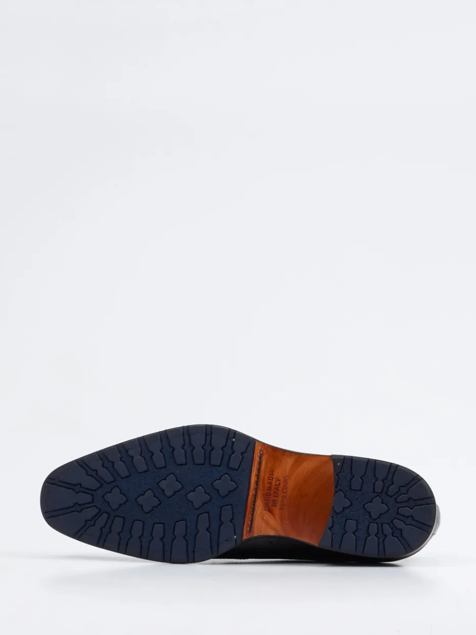 Feinstes Hirschleder, elegante Broguings und rutschfeste Sohle vereinen Funktionalität mit einem stilvollen Auftritt – ideal für formelle Anlässe und moderne Business-Looks.