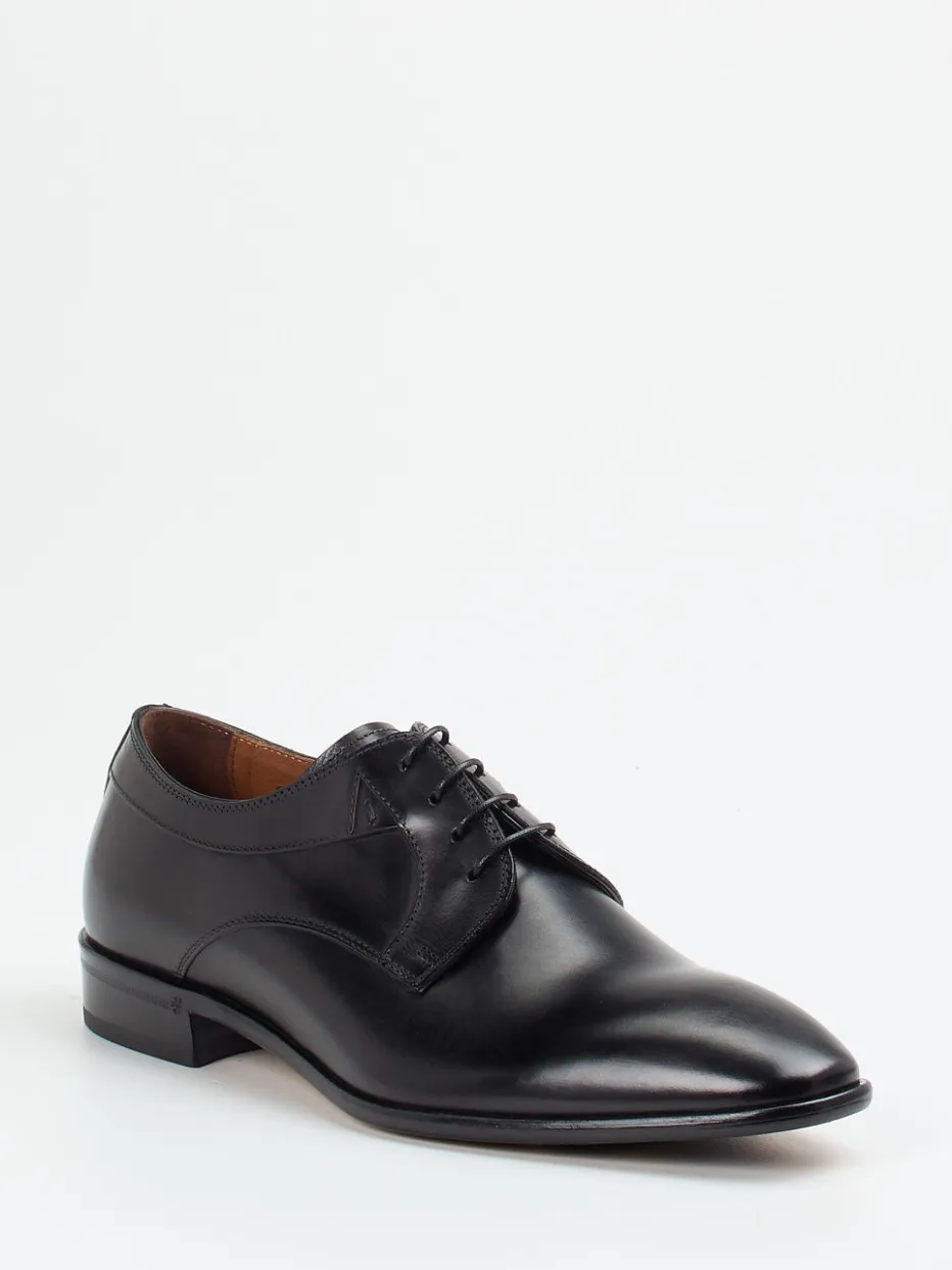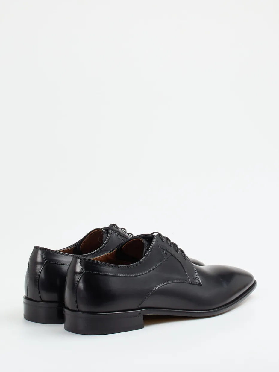 Ein formvollendeter Business-Derby mit glänzender Oberfläche und klarer Linienführung – gefertigt aus hochwertigem Kalbleder und ausgestattet mit funktionaler Ledersohle samt Gummieinsätzen.