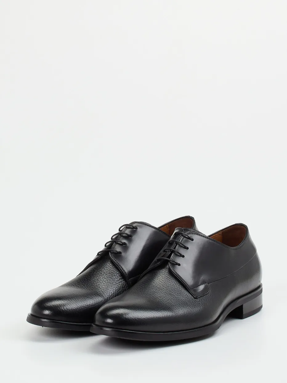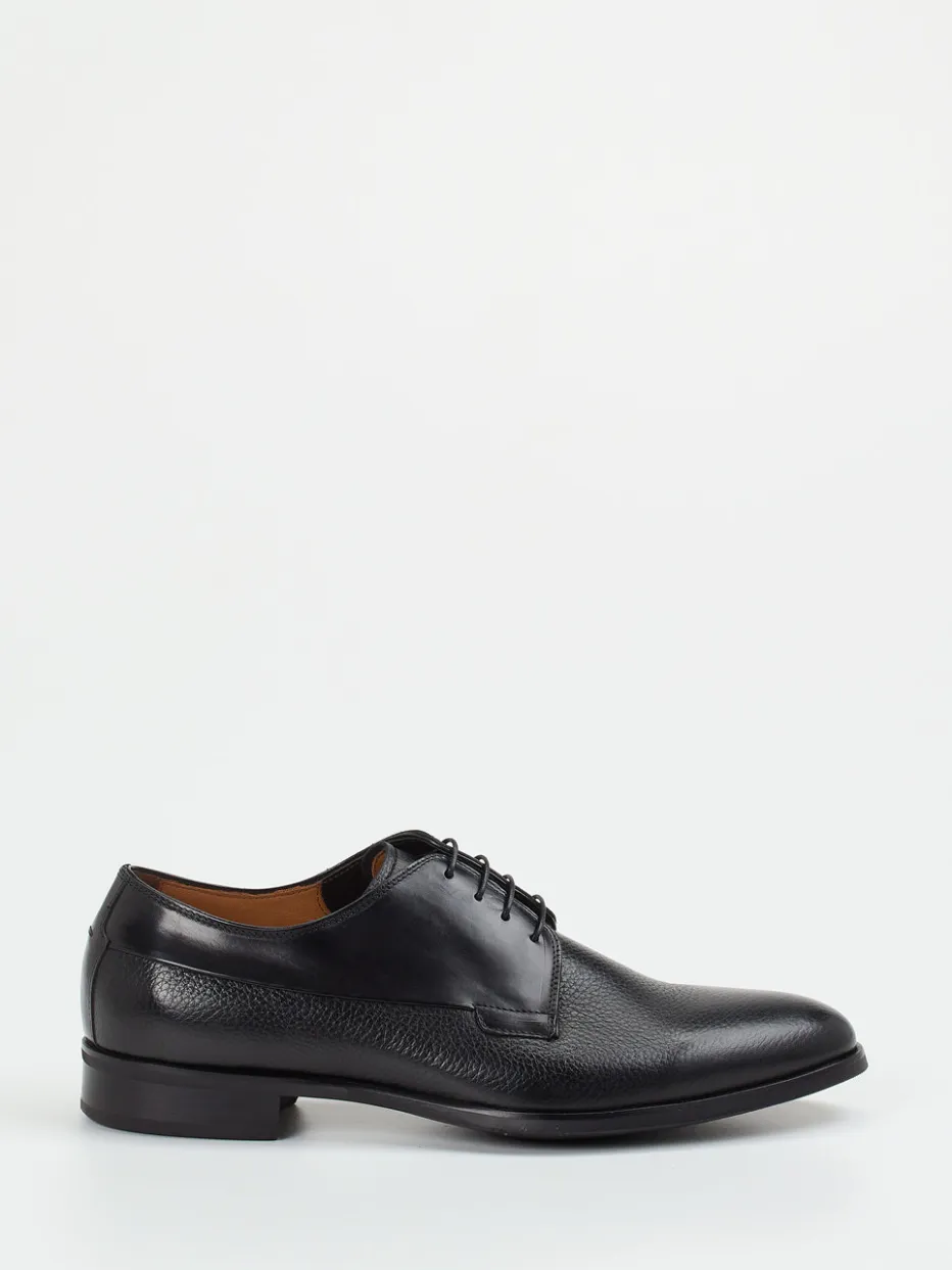 Der elegante Derby von Ralph Harrison Edition vereint hochwertiges Hirschleder mit einem stilvollen Struktur-Mix und bietet durch das weich gepolsterte Lederfußbett hohen Komfort – auch bei längeren Einsätzen.