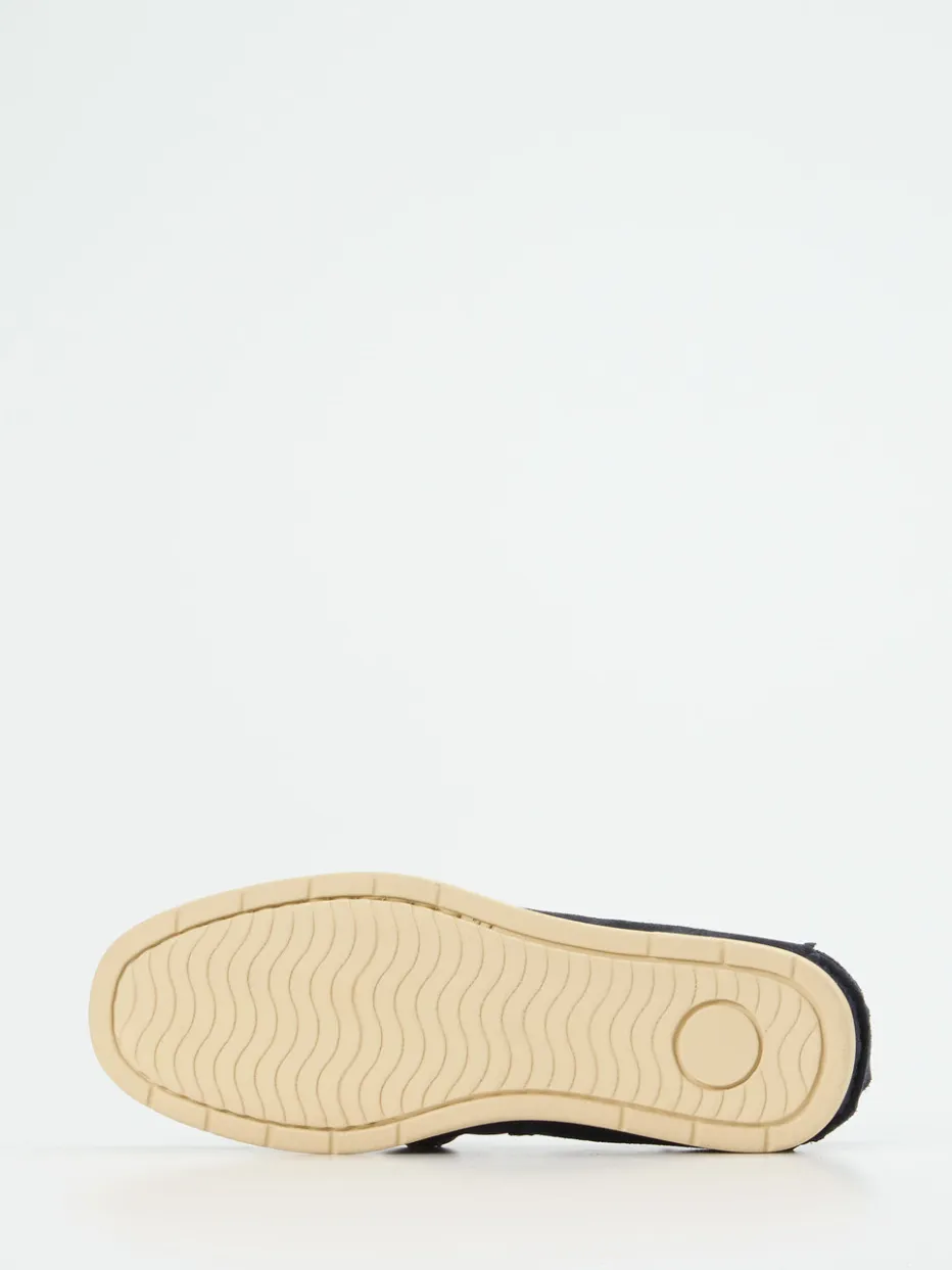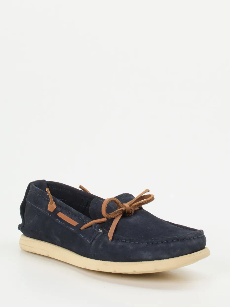 Stilvoller Komfort für den Sommer.Ralph Harrison zeigt mit diesem Mokassin-Slipper eine elegante Freizeitinterpretation für Herren. Für entspannte Tage bei warmem Wetter konzipiert, überzeugt das Modell mit dunkelblauem Veloursleder und samtig matter Oberfläche. Cognacfarbene Lederbänder setzen stilvolle Akzente auf dem Blatt und an den Seiten. Seine flache, rund zulaufende Silhouette, kombiniert mit gummierter, rutschhemmender Sohle und weicher Innensohle, bietet besten Tragekomfort. Die Zuglasche erleichtert den Einstieg, ungefüttertes Leder im Inneren sorgt für ein angenehmes Klima. Ideal für Preppy-Outfits mit sommerlichem Flair. Erlesene Verarbeitung und lässige Farbharmonie – typisch Ralph Harrison.