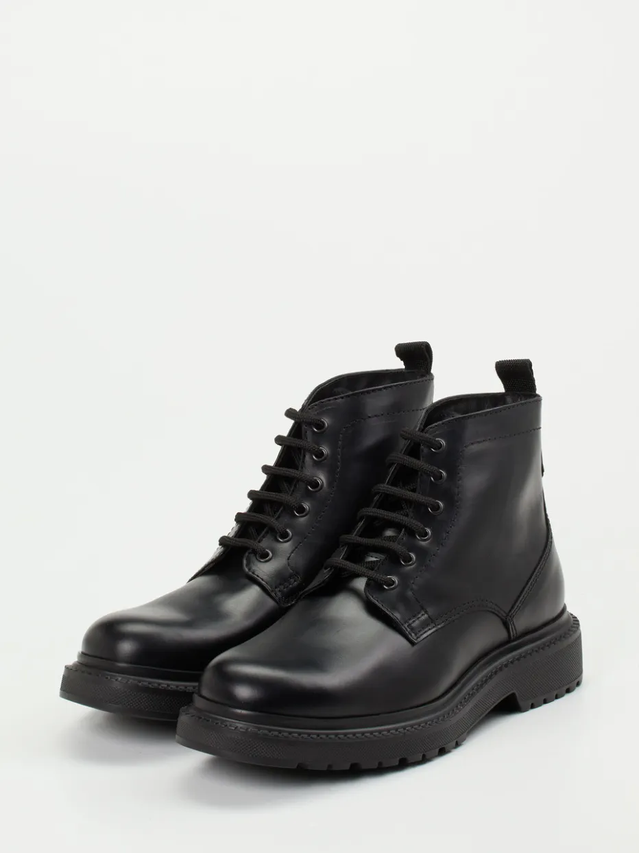 Bei kühlen Temperaturen ein treuer Begleiter: Das schwarze Fettleder mit leicht glänzender Oberfläche ist wind- und wasserabweisend und harmoniert mit der robusten, profilierten Gummisohle. Die klare, klassische Silhouette, die tonigen Nähte und die markante Sechsloch-Schnürung unterstreichen den Combat-Look mit Utility-Charakter. Der hinten angebrachte Zugriemen sorgt für Komfort beim Anziehen, das wärmende Textilfutter für angenehmes Fußklima. Ideal zu Cargohosen oder Lederjacke – für urbane Freizeitlooks mit funktionalem Anspruch.