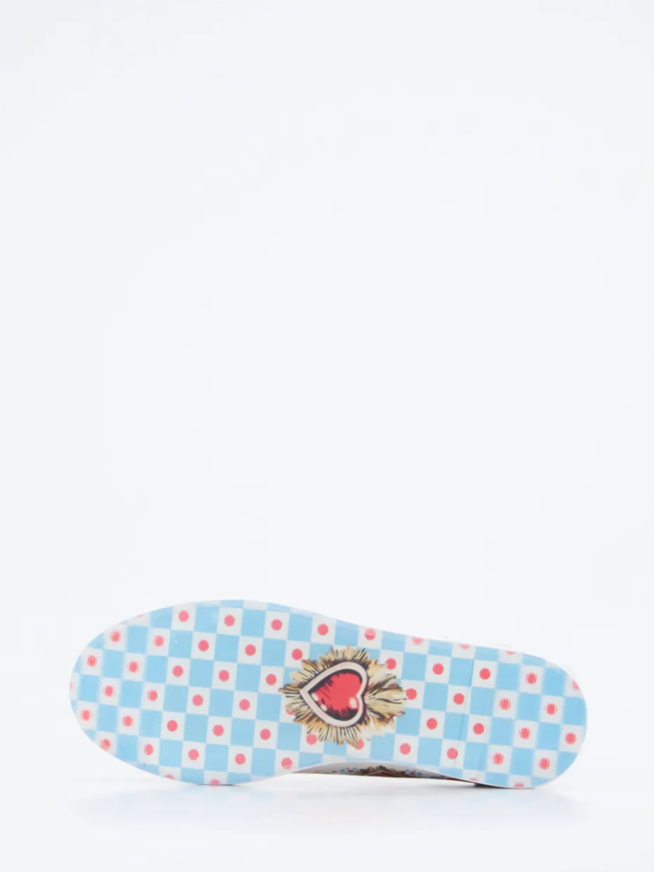 Statement am Fuß – neu interpretiert.Die Marke Rise entwirft ausdrucksstarke Sneaker für die urbane Styleszene. Dieses Low-Top-Modell verbindet weißes Leder mit einem multicolor Grafikprint aus Herz- und Blumenmotiven. Ideal für expressive Auftritte im Alltag oder bei Events: Die glatte Lederoberfläche zeigt sich mit auffälligem Pop-Art-Druck, ergänzt durch hellblaue Schnürsenkel und florale Zierdetails entlang der Gummisohle. Das weiße Kalbleder-Innenfutter und das gepolsterte Fußbett bieten angenehmen Tragekomfort. Klassische flache Silhouette, inspiriert vom Color-Blocking-Trend der Saison. Lässt sich ideal zu weißen Denim-Looks und schlichten Accessoires kombinieren. Ein Sneaker für modisches Selbstbewusstsein und detailverliebte Streetwear-Ästhetik.