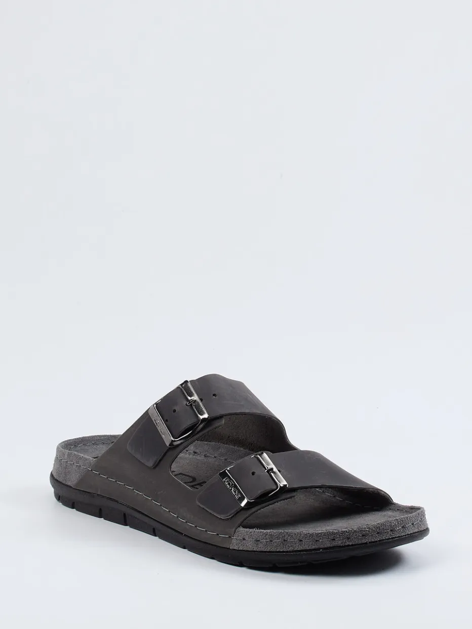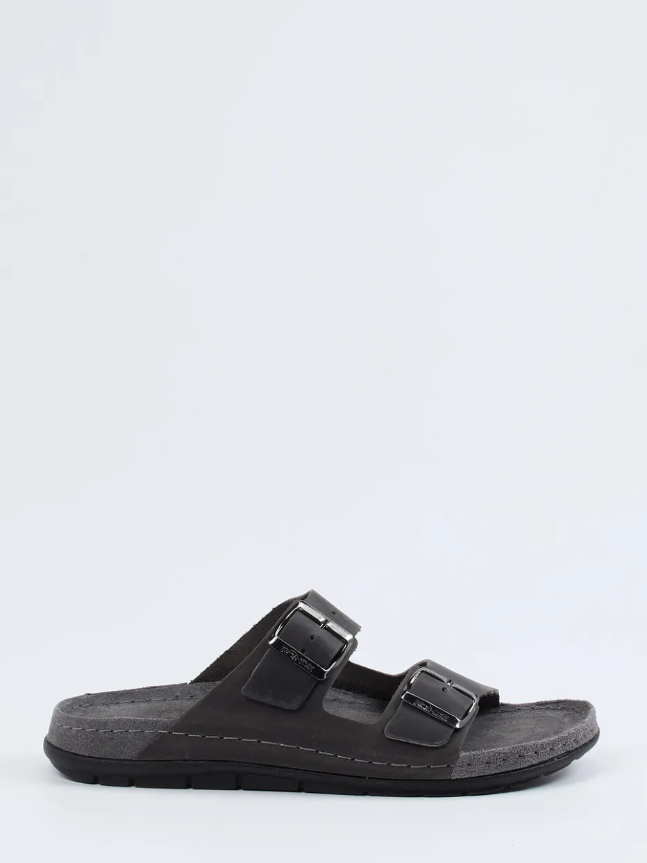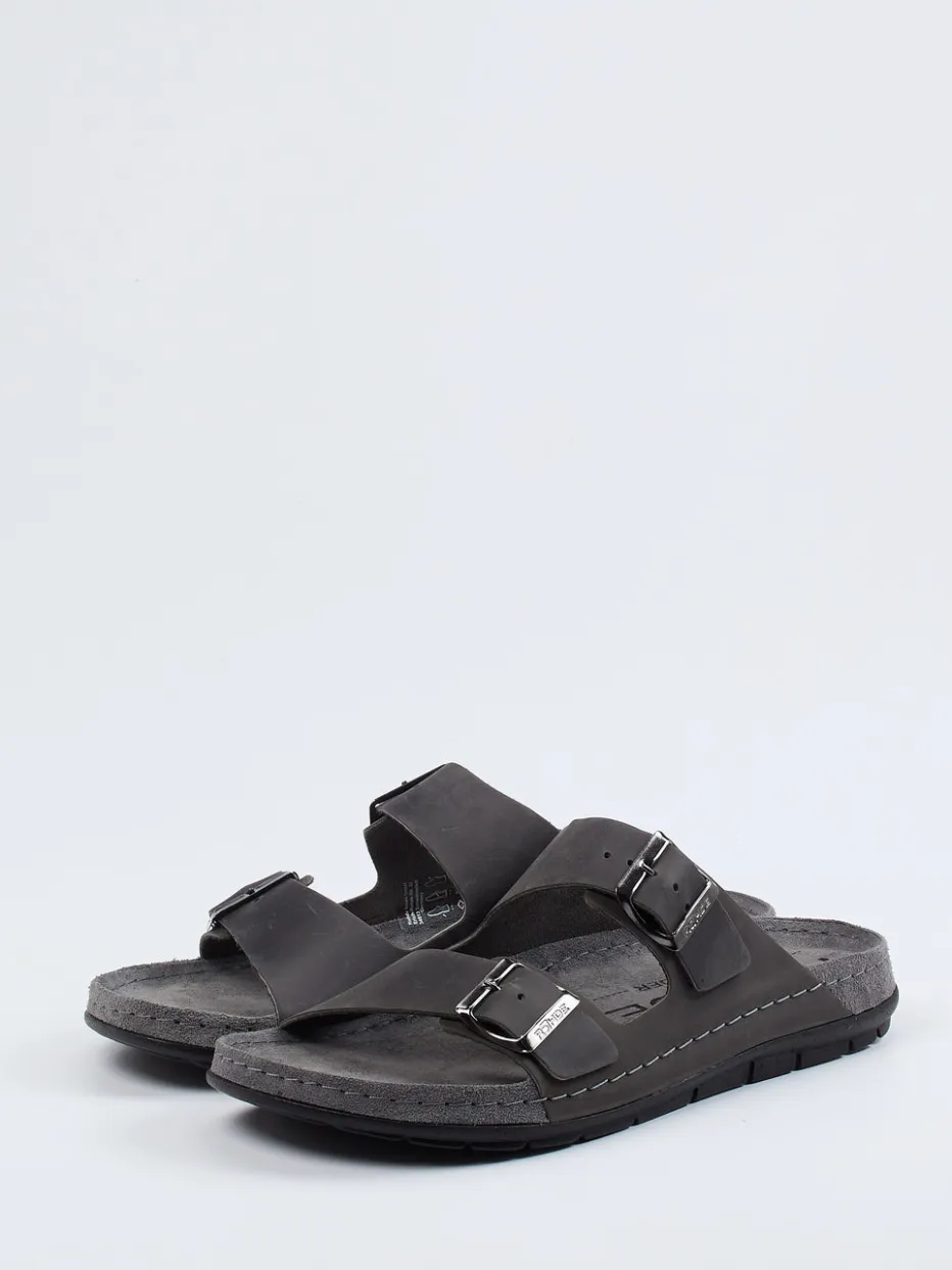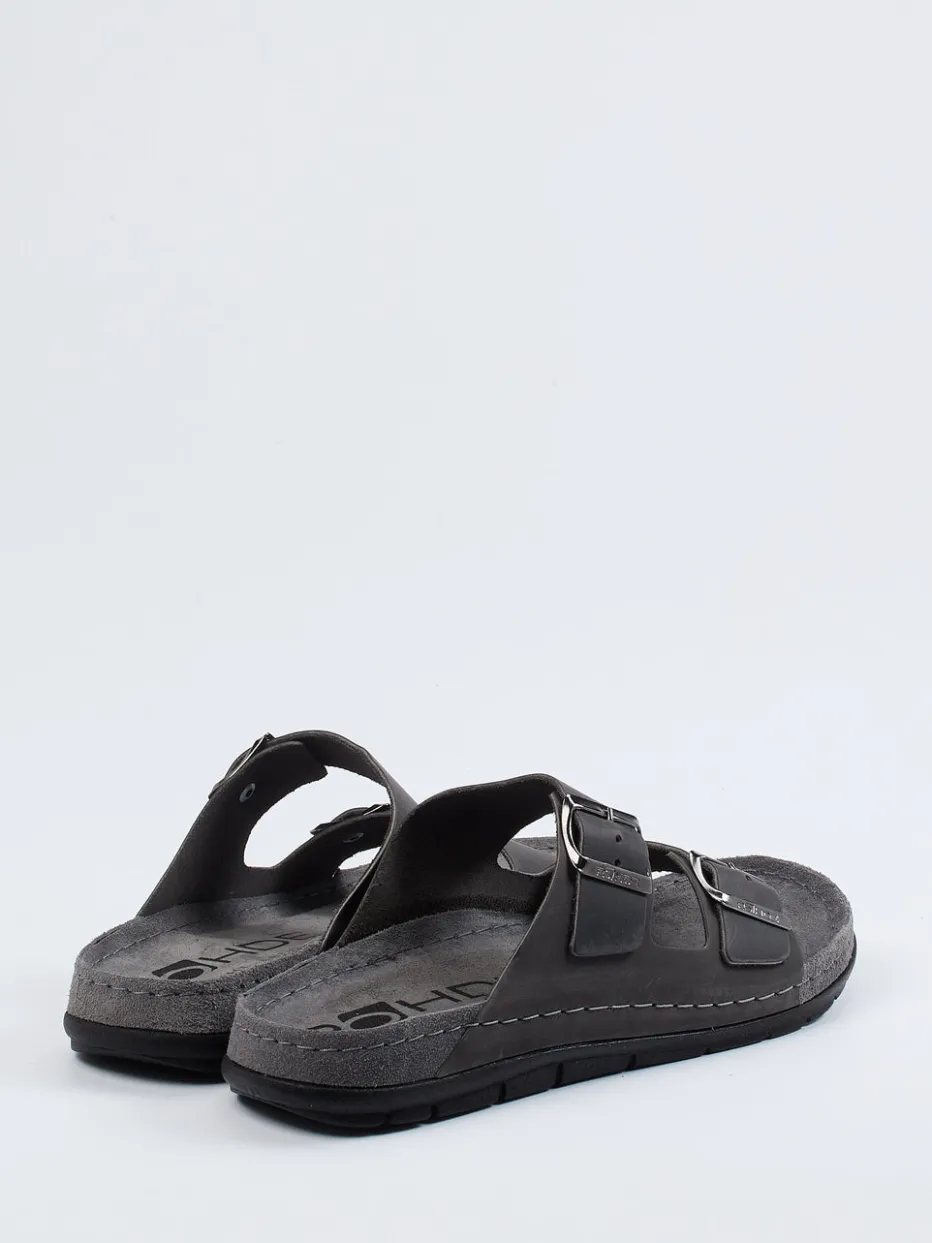 Die ergonomisch geformte Herrenpantolette überzeugt durch nachhaltiges Echtleder, individuell regulierbare Riemen und ein weiches Fußbett für ganztägigen Komfort.