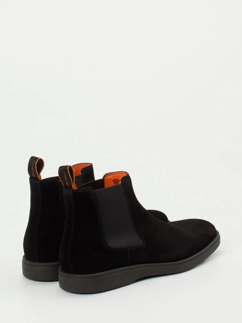 Diese Chelsea Boots von Santoni überzeugen mit hochwertigem Veloursleder, klarer Linienführung und einem raffiniert gesetzten Innenfutter-Akzent in Orange – ideal für stilbewusste City-Looks.